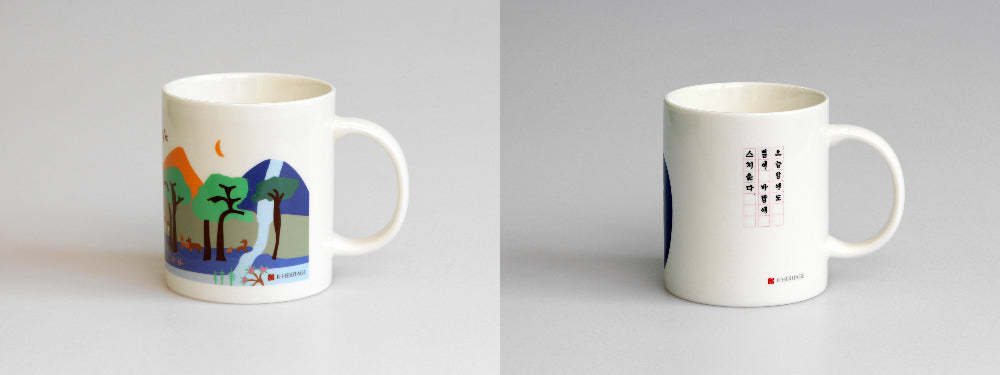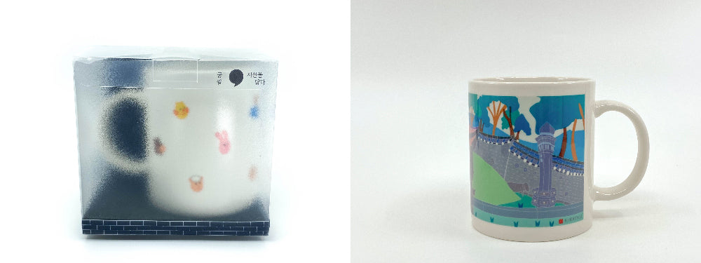 Experience the beauty of Gyeongbokgung Palace through the eyes of an autistic designer. This beautifully illustrated mug captures various iconic elements of the palace, including Hyangwonjeong Pavilion, Gwanghwamun Gate, Eocheonguni (traditional guardian statues), cherry blossom trees, and more. It offers a fresh perspective on the intricate details and hidden beauty of Korea’s royal heritage.