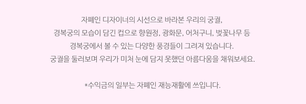 More than just a mug, this piece celebrates Korean heritage and supports autistic artists. Enjoy your favorite drink while appreciating the unique vision of Gyeongbokgung Palace.