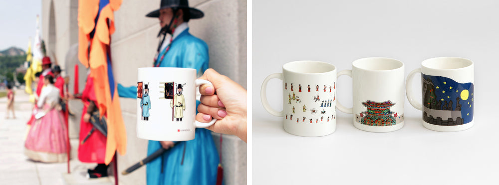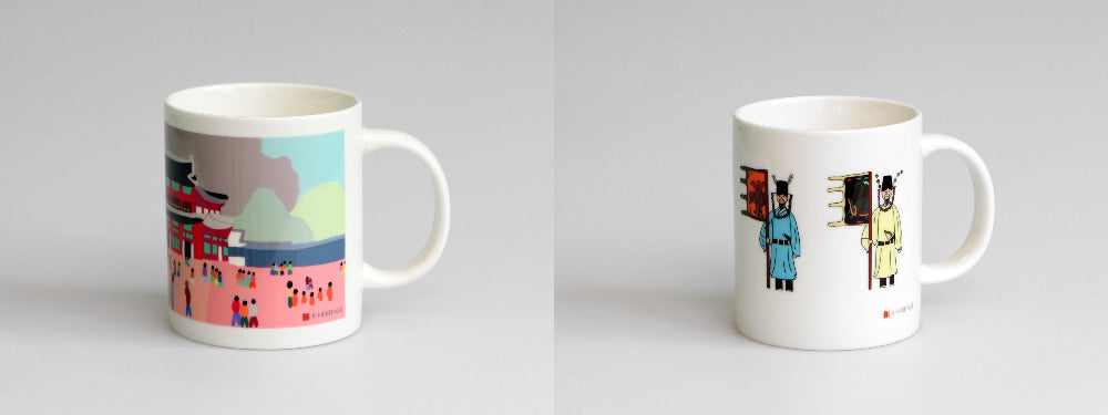 Each mug features artwork inspired by different aspects of Korea’s royal culture, making it not just a drinkware item but a meaningful cultural keepsake. The collection includes: