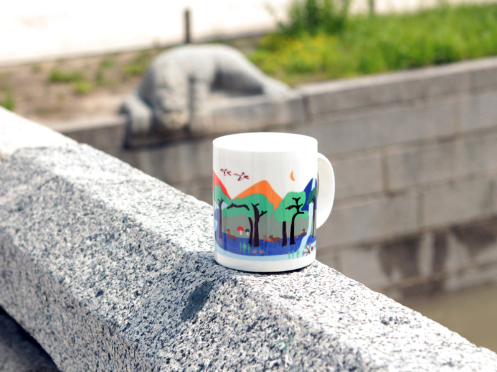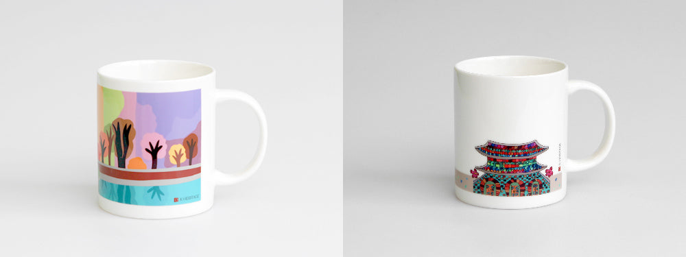 Experience the beauty of Gyeongbokgung Palace through the eyes of an autistic designer. This beautifully illustrated mug captures various iconic elements of the palace, including Hyangwonjeong Pavilion, Gwanghwamun Gate, Eocheonguni (traditional guardian statues), cherry blossom trees, and more. It offers a fresh perspective on the intricate details and hidden beauty of Korea’s royal heritage.