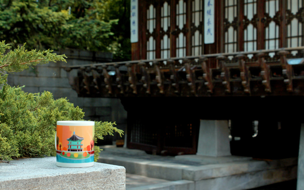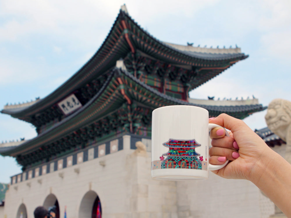More than just a mug, this piece celebrates Korean heritage and supports autistic artists. Enjoy your favorite drink while appreciating the unique vision of Gyeongbokgung Palace.