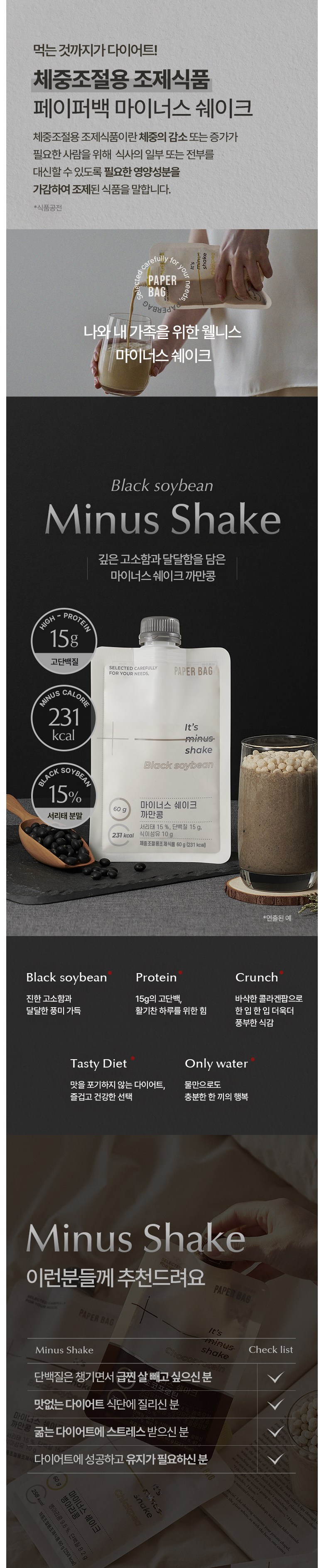 I’ve been using the PAPER BAG It’s Minus Shake Black Soybean for a few weeks now, and I am genuinely impressed. The 15g of protein it offers really keeps me full throughout my busy mornings, making it easy to stick to my weight management goals. The shake has a delightful nutty flavor that’s far from boring like many diet shakes I’ve tried before. Plus, those crispy collagen pops add a fun crunch that enhances the overall texture. Mixing it with just water is incredibly convenient—perfect for on-the-go meals.