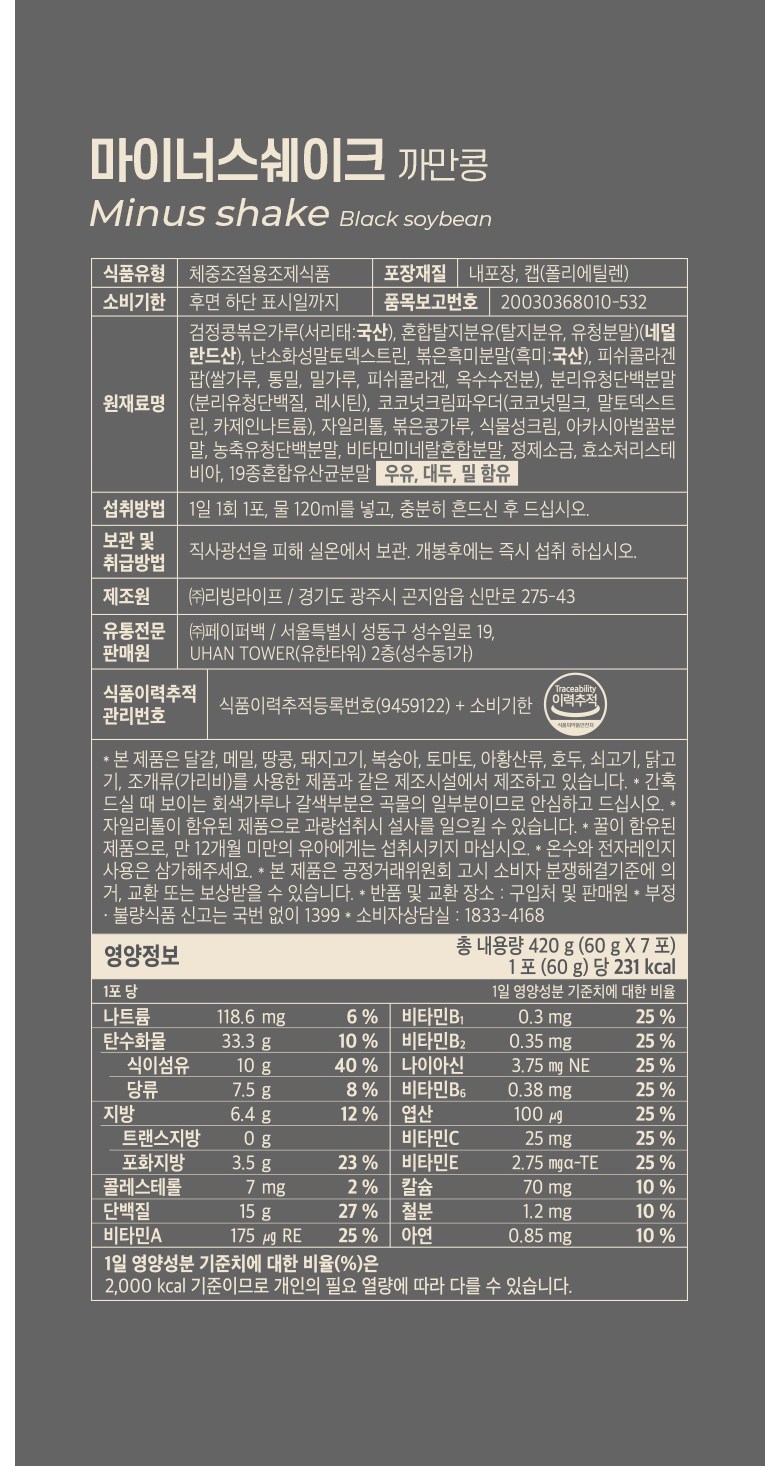The Minus Shake Black Soybean is a complete meal replacement, ensuring you get all the essential nutrients.