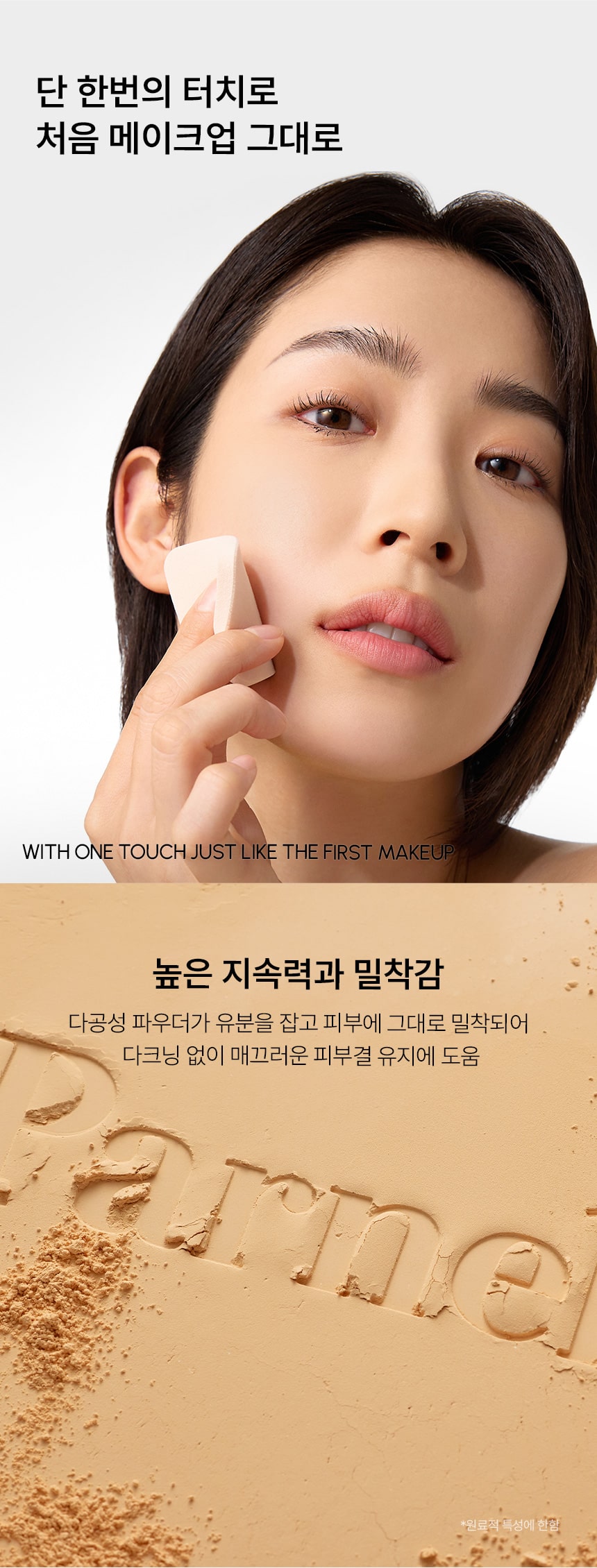 Unveil naturally perfected skin with the Parnell Cicamanu Matte Spondation. More than just a powder, this innovative 1-Step Hybrid Powder acts like a real-life blur filter, effortlessly smoothing your complexion for a refined, matte finish that lasts all day. Experience the magic of transparent radiance combined with the soothing power of Cicamanu.