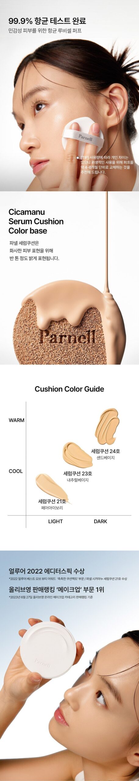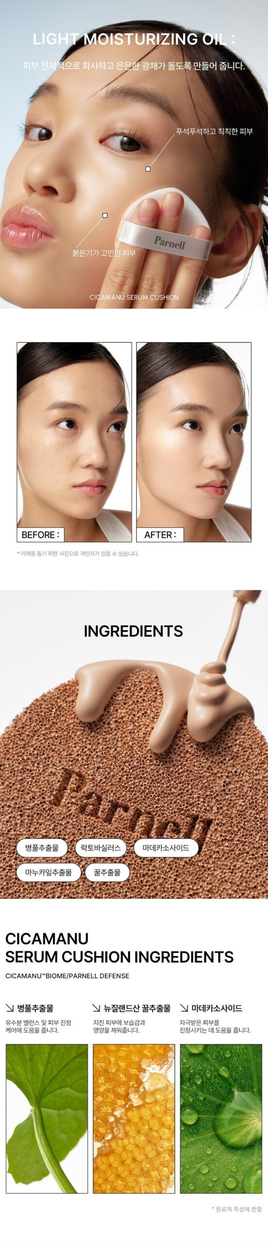 I was impressed by the Parnell Cicamanu Serum Cushion. The SPF45 PA++ offers excellent sun protection, which is crucial for my sensitive skin. After using it daily for a week, I noticed that my redness significantly reduced and my skin felt deeply hydrated without feeling greasy. The lightweight formula applies smoothly and adheres perfectly without any lumps. It’s become a staple in my beauty routine.