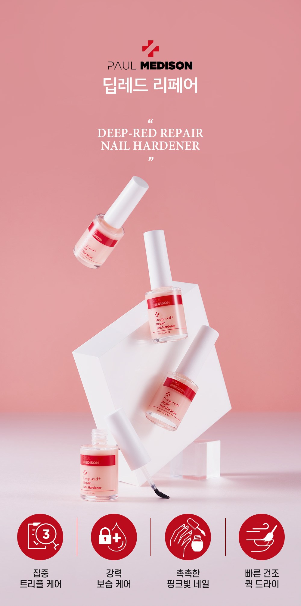 The Paul Medison Deep Red Repair Nail Hardener is a premium nail strengthening serum that provides triple care—nourishment, hydration, and reinforcement—in one easy step. This all-in-one nail treatment helps repair damaged, brittle nails while creating a beautiful semi-sheer finish that can be worn alone or as a base coat.