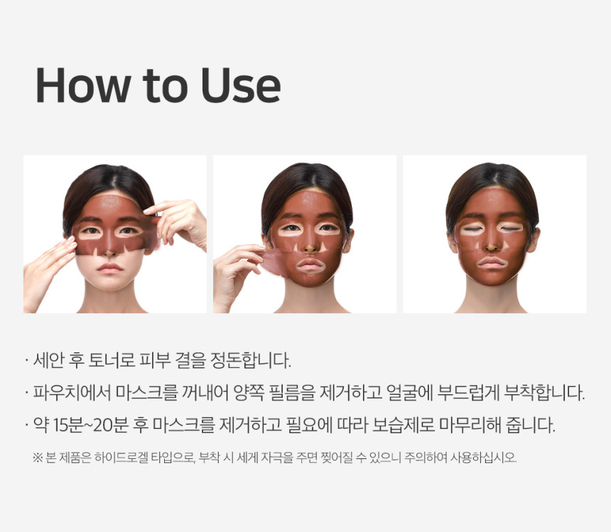 - Apply to Face: Place the hydrogel sheet evenly across your face, aligning with your eyes, nose, and mouth.