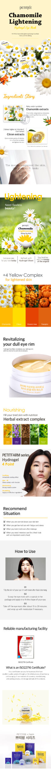 PETITFEE Chamomile Lightening Eye Patch 60Sheets(30pairs) – 84g –