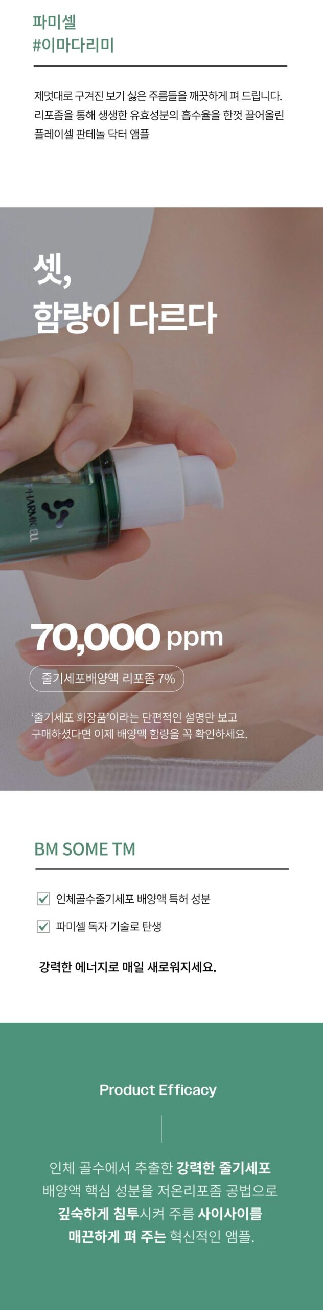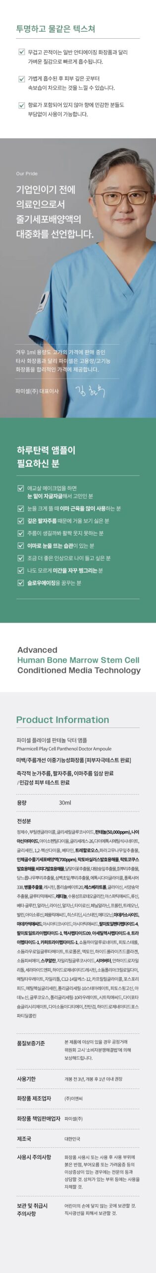 Unlike conventional stem cell cosmetics that use plant or fat-derived extracts, this ampoule is formulated with patented human bone marrow stem cell culture solution—a groundbreaking skincare ingredient developed by PHARMICELL, the pioneer of stem cell treatment since 2011.
