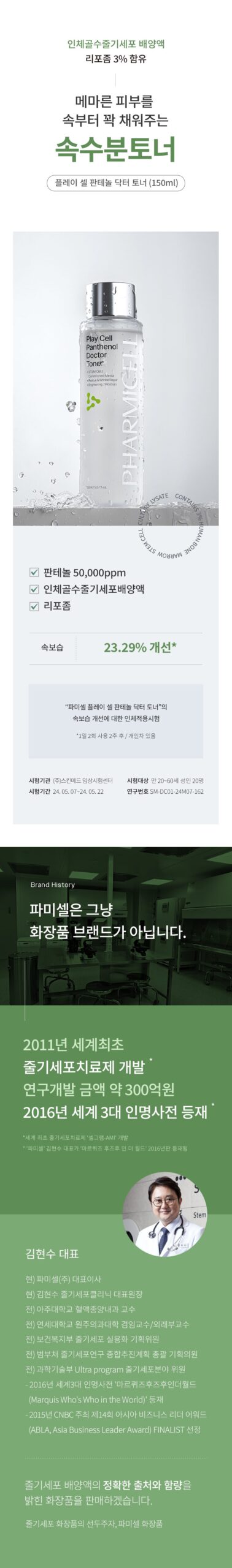 Introducing PHARMICELL Play Cell Panthenol Doctor Toner, a revolutionary skincare solution infused with 50,000 ppm of Panthenol, Bone Marrow Stem Cell Culture Extract, and Liposome Technology. This toner delivers deep hydration, strengthens the skin barrier, and enhances skin elasticity using an advanced low-temperature liposome method for optimal absorption.