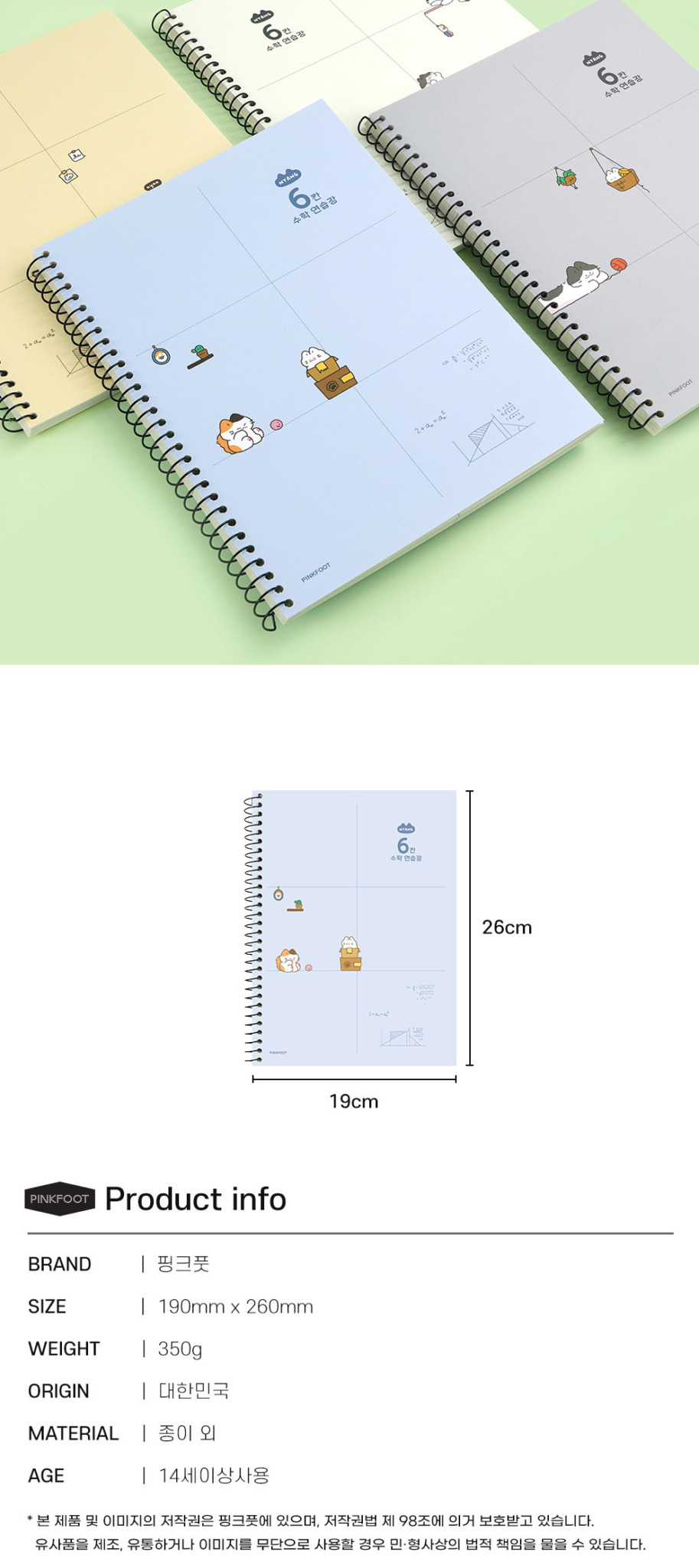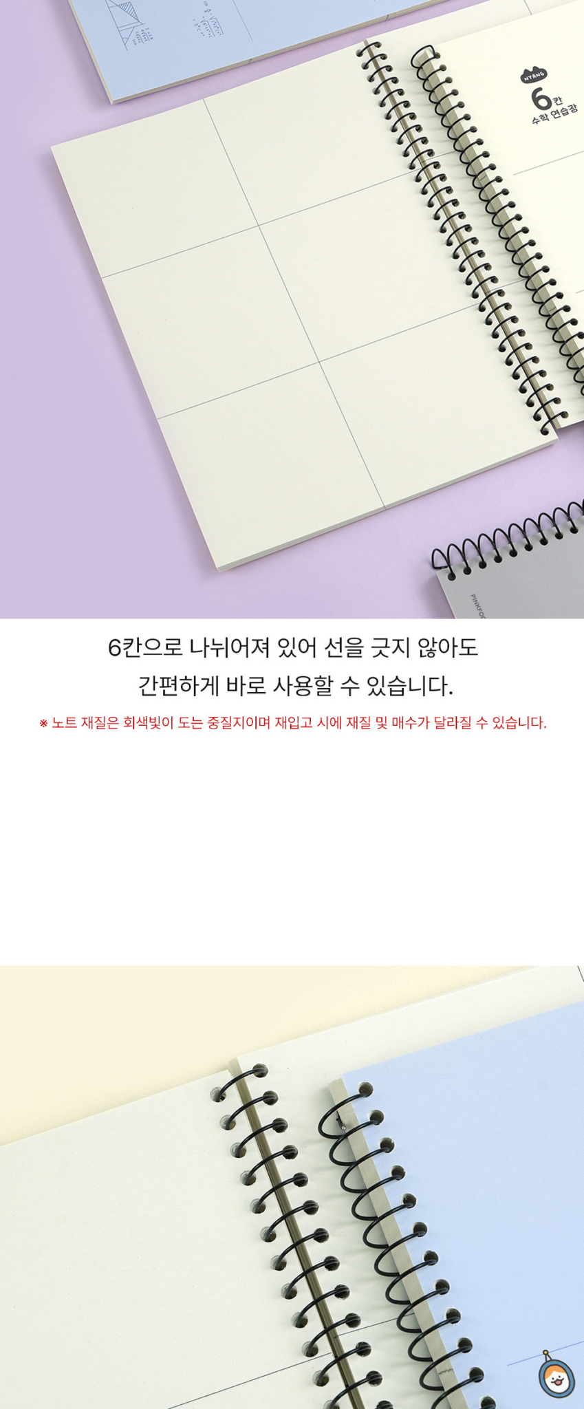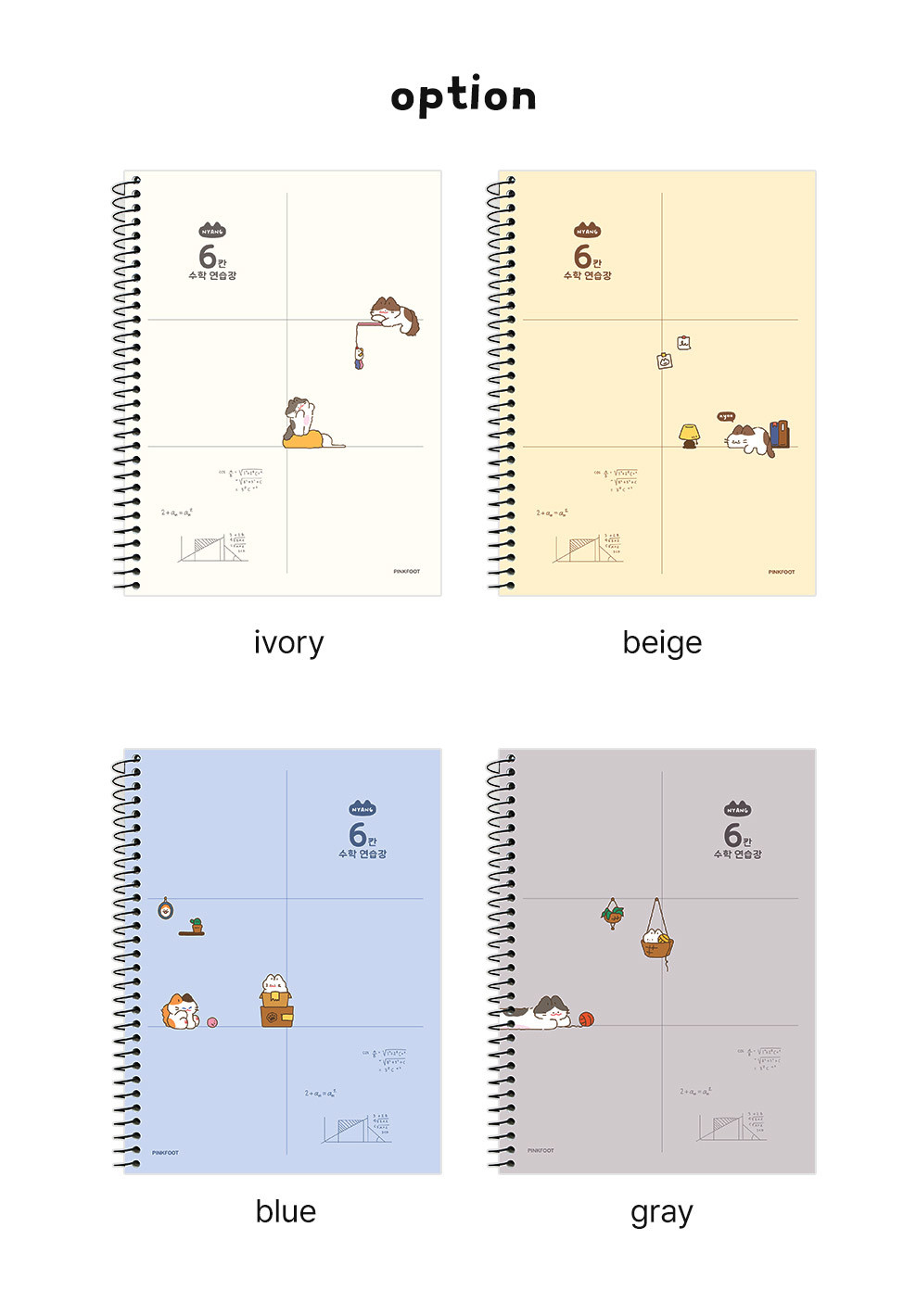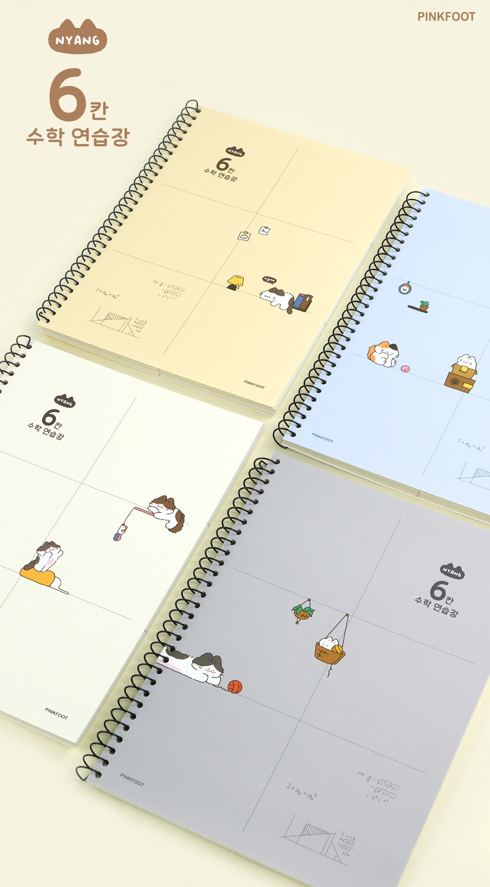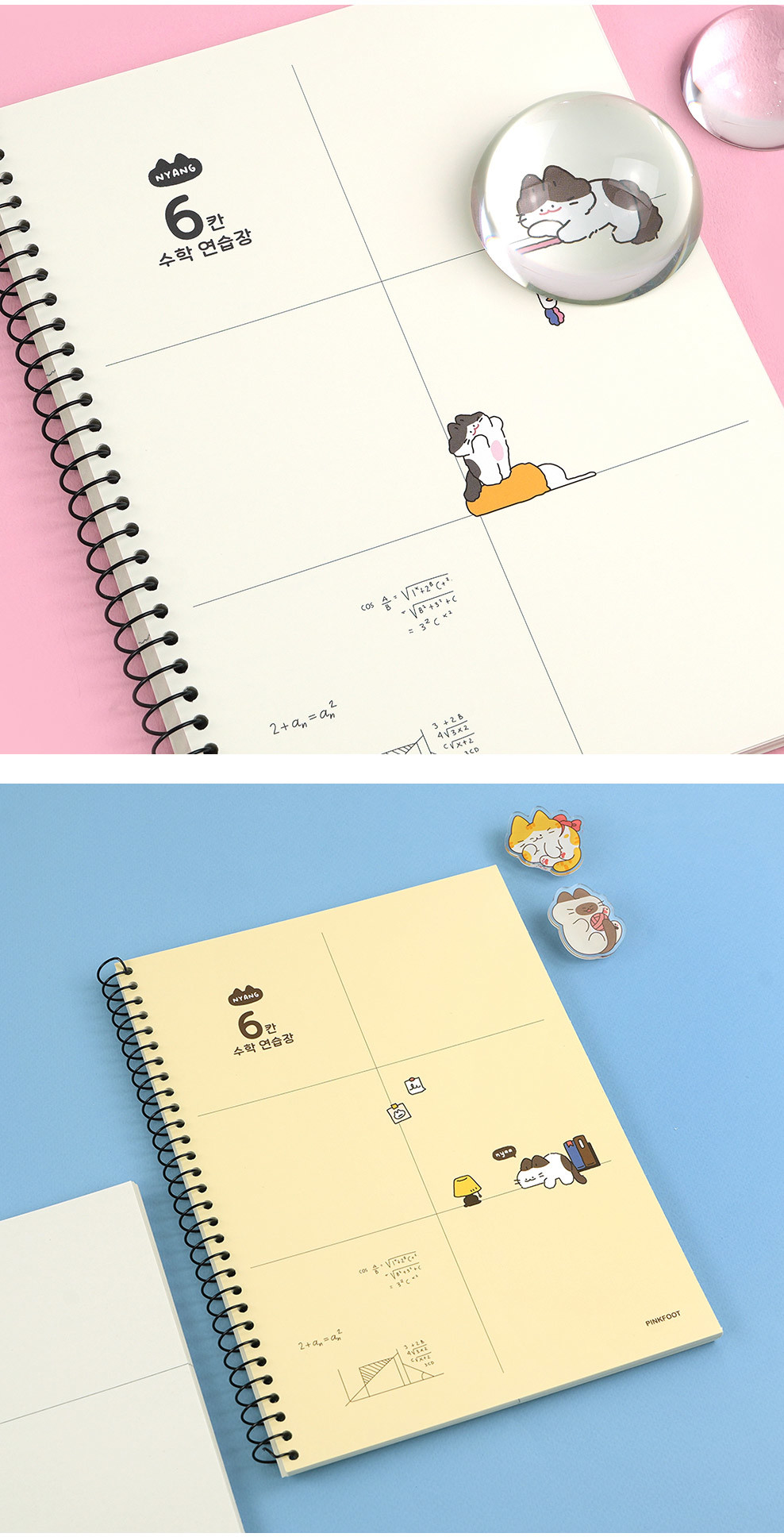 Make math practice more enjoyable with this cute cat-themed study notebook from PINKFOOT. The 6-section grid layout (6칸) is specially designed for mathematics practice, featuring adorable Nyang Nyang cat characters.