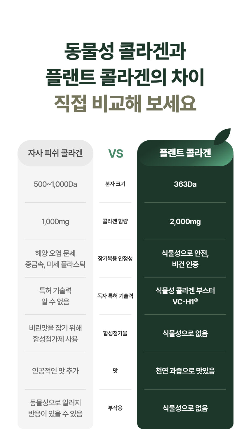 - Unique Hydrolyzing Technology: Extracts collagen from plant cell walls to create VC-H1®, a patented plant-based collagen.