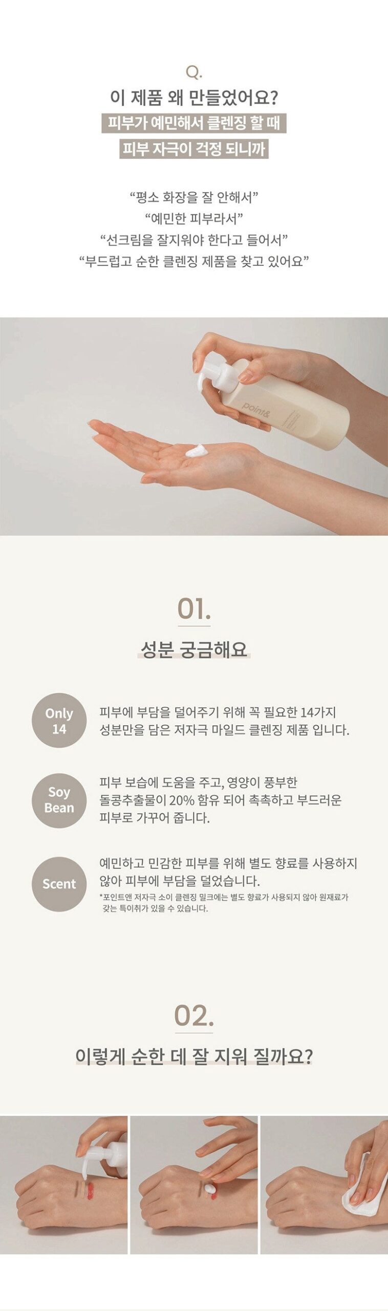 It is a low-irritation mild cleansing product that contains only the necessary 14 ingredients to reduce burden on the skin.