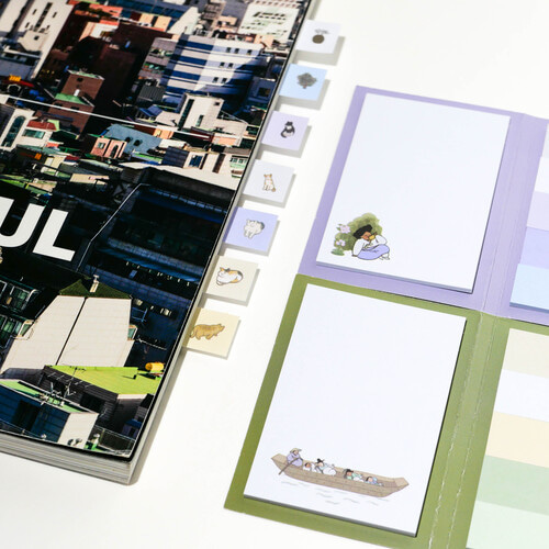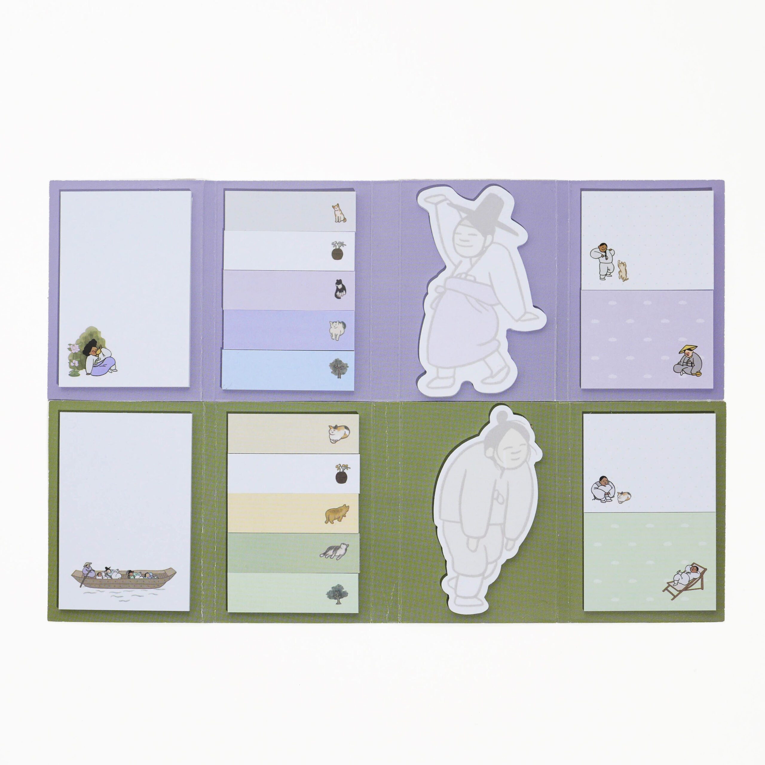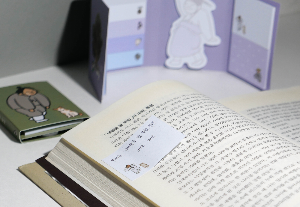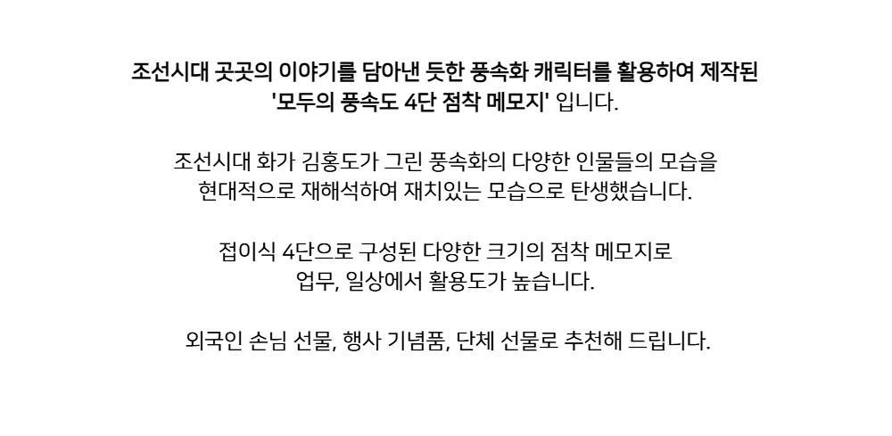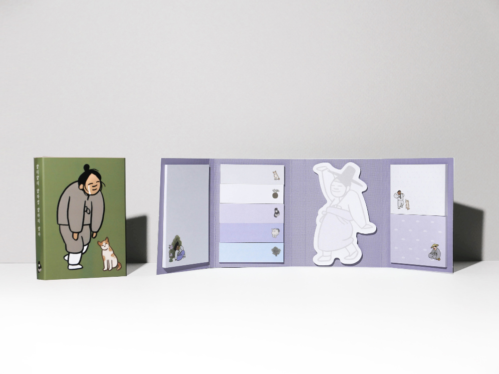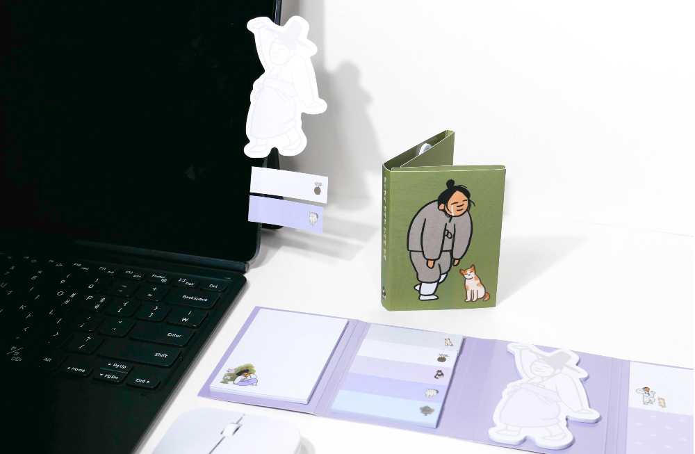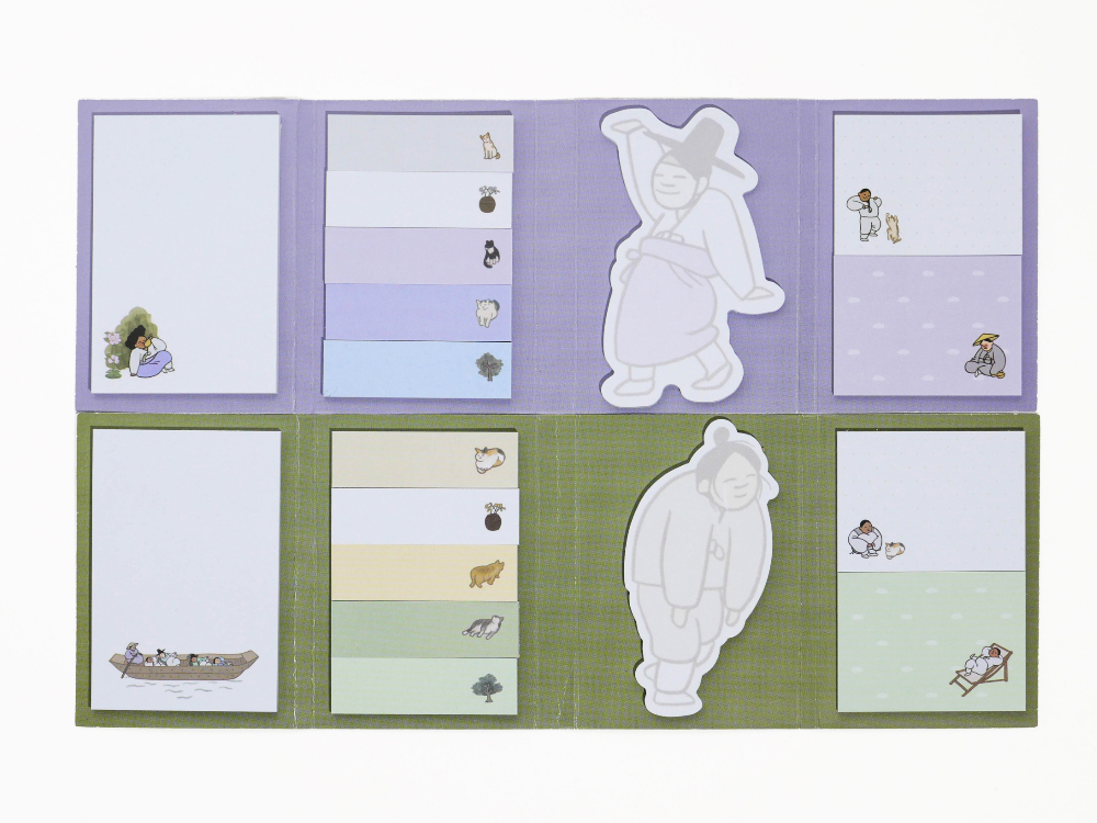 This 4-fold sticky note set, “Everyone’s Daily Life,” is inspired by traditional Korean genre paintings (pungsokhwa) from the Joseon dynasty.