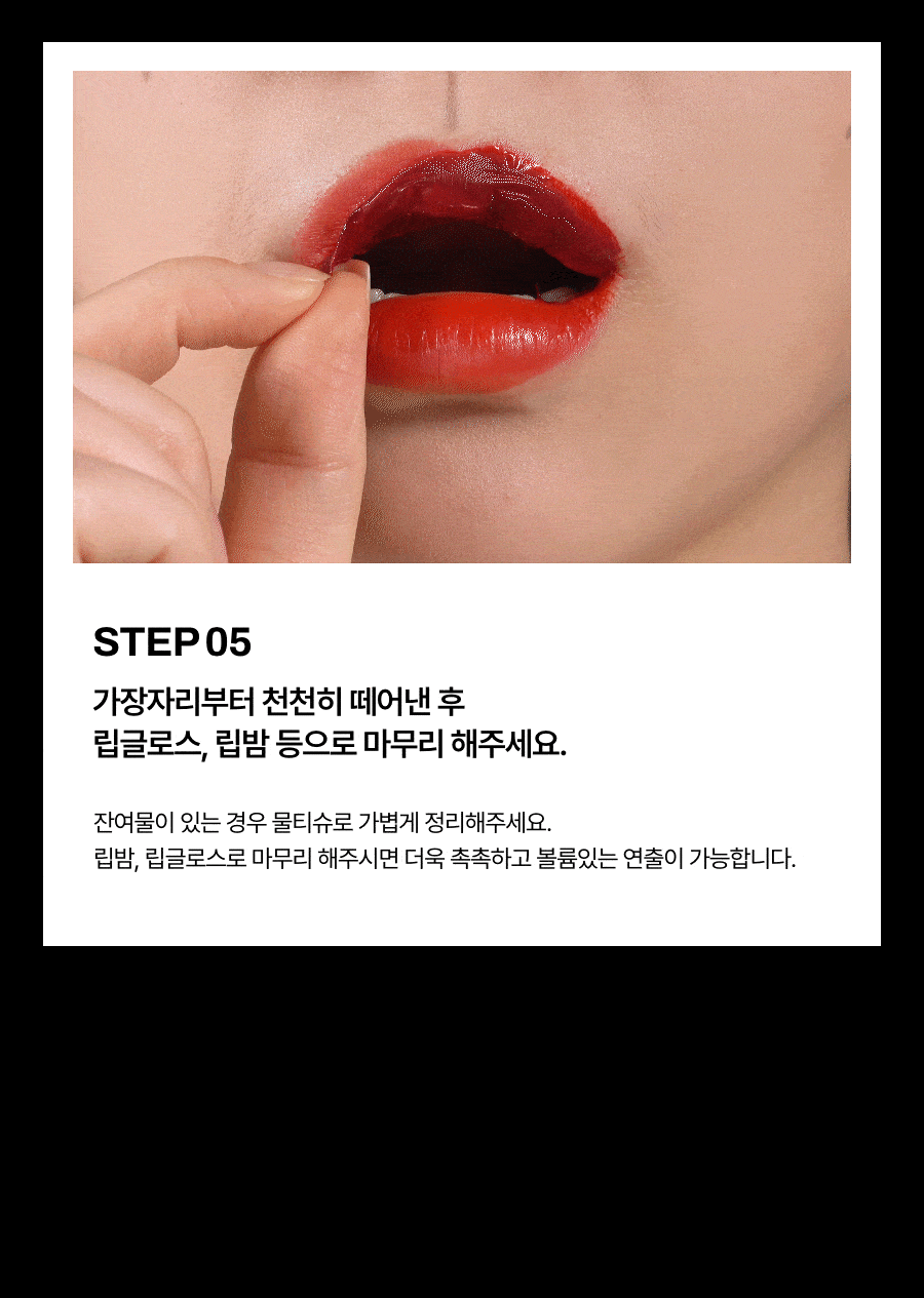 Exfoliation is essential: Before use, make sure to exfoliate your lips gently with a lip scrub or warm towel to remove dead skin. If exfoliation is skipped, dead skin cells can stick to the peel-off formula, resulting in uneven color or potential lip damage.