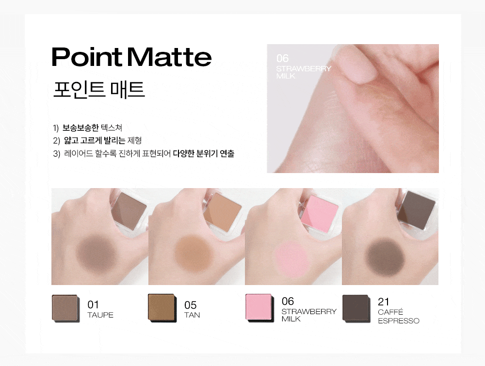 - Initial Sweep: Use a wide eye brush to gently sweep across the eyelid, creating a smooth, even base. Shades 05. TAN and 06. STRAWBERRY MILK are particularly recommended for their versatility and soft texture, providing a perfect foundation for further layering.