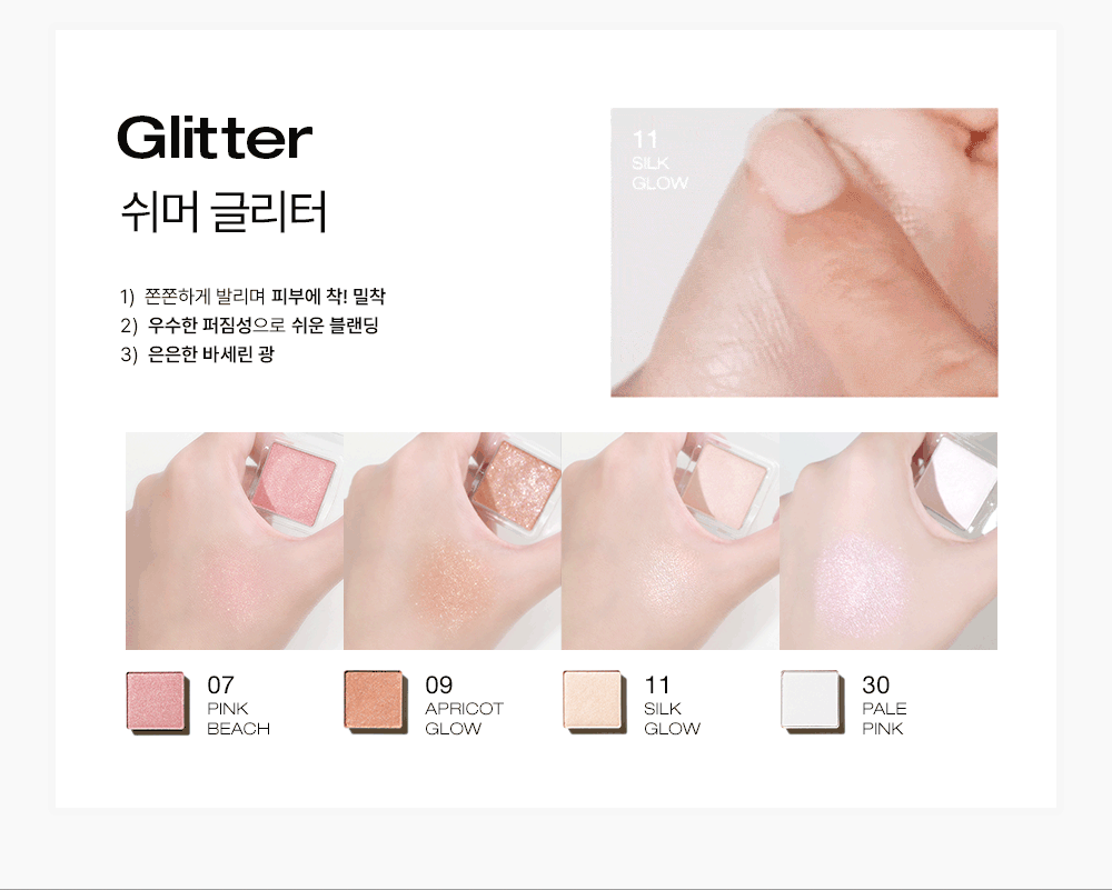 - 11. SILK GLOW: A silky, luminous shade for highlighting.