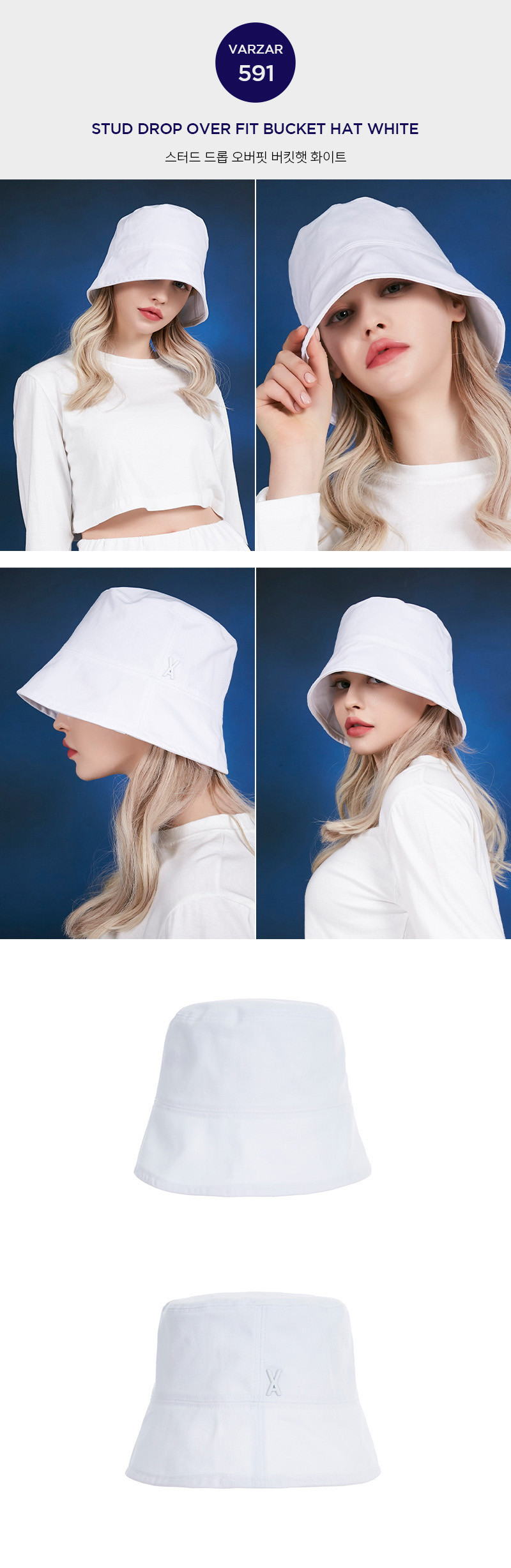 This drop overfit bucket hat is made of 100% high-density cotton and has a downward-facing brim.