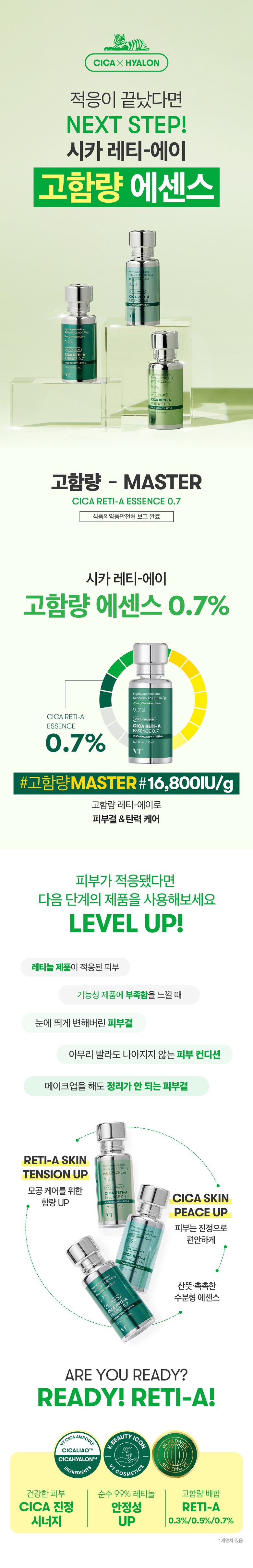 Achieve healthier, more radiant skin with CICA RETI-A Essence 0.7%, your key to advanced skincare with the power of retinol and soothing CICA.