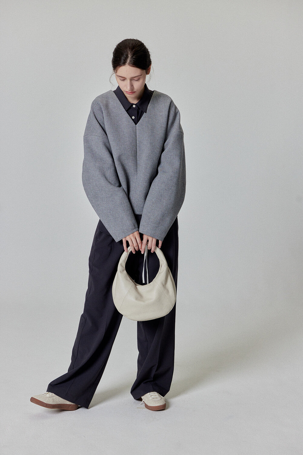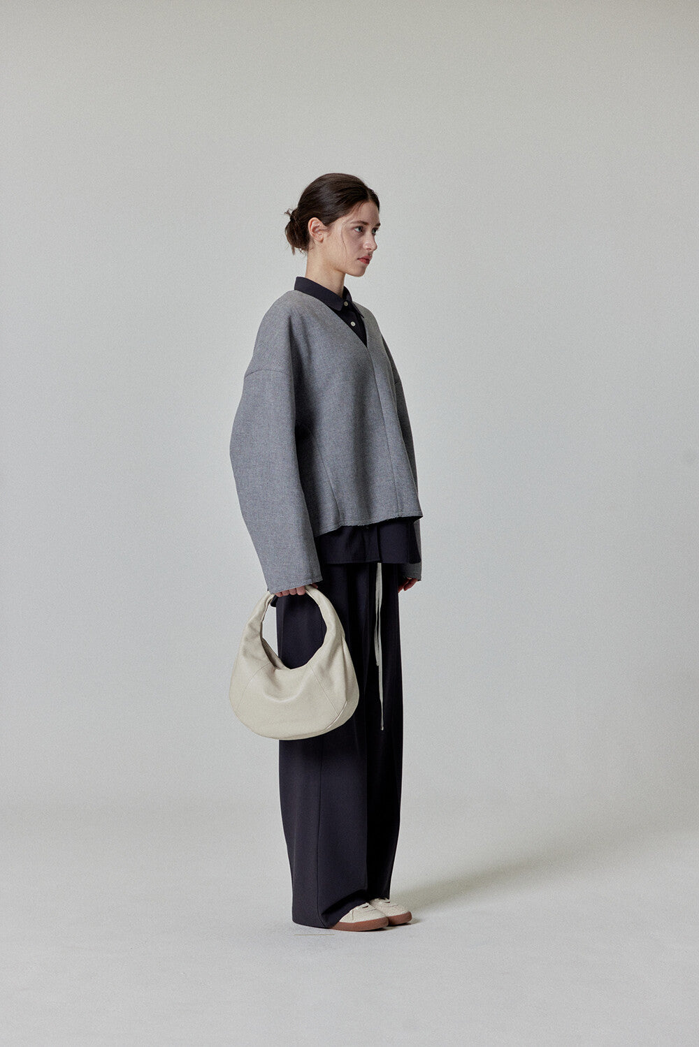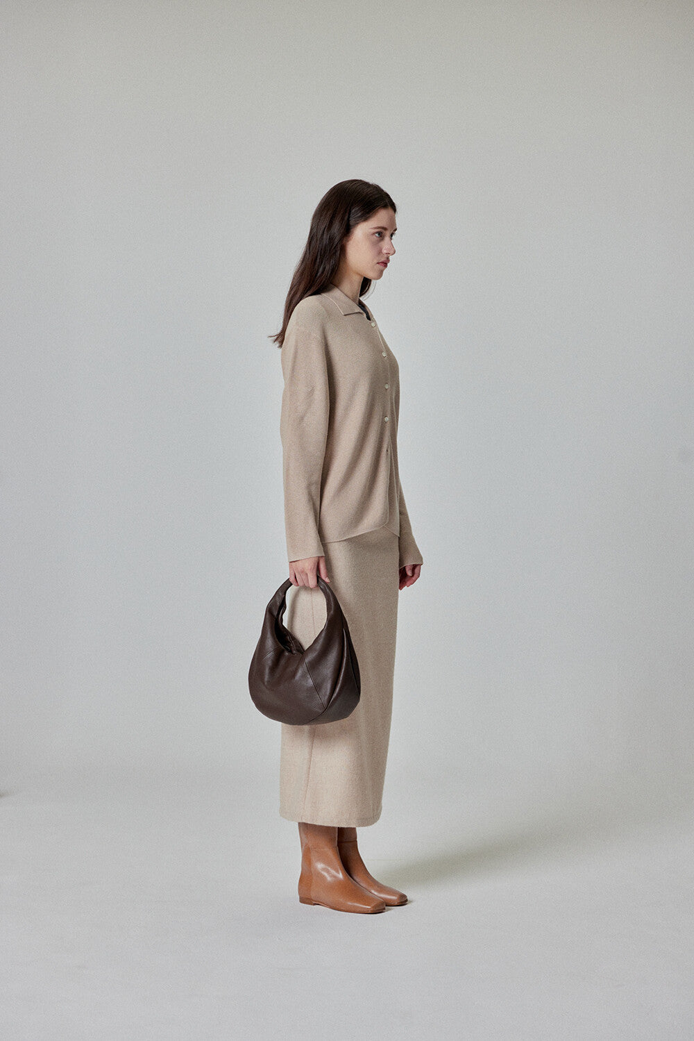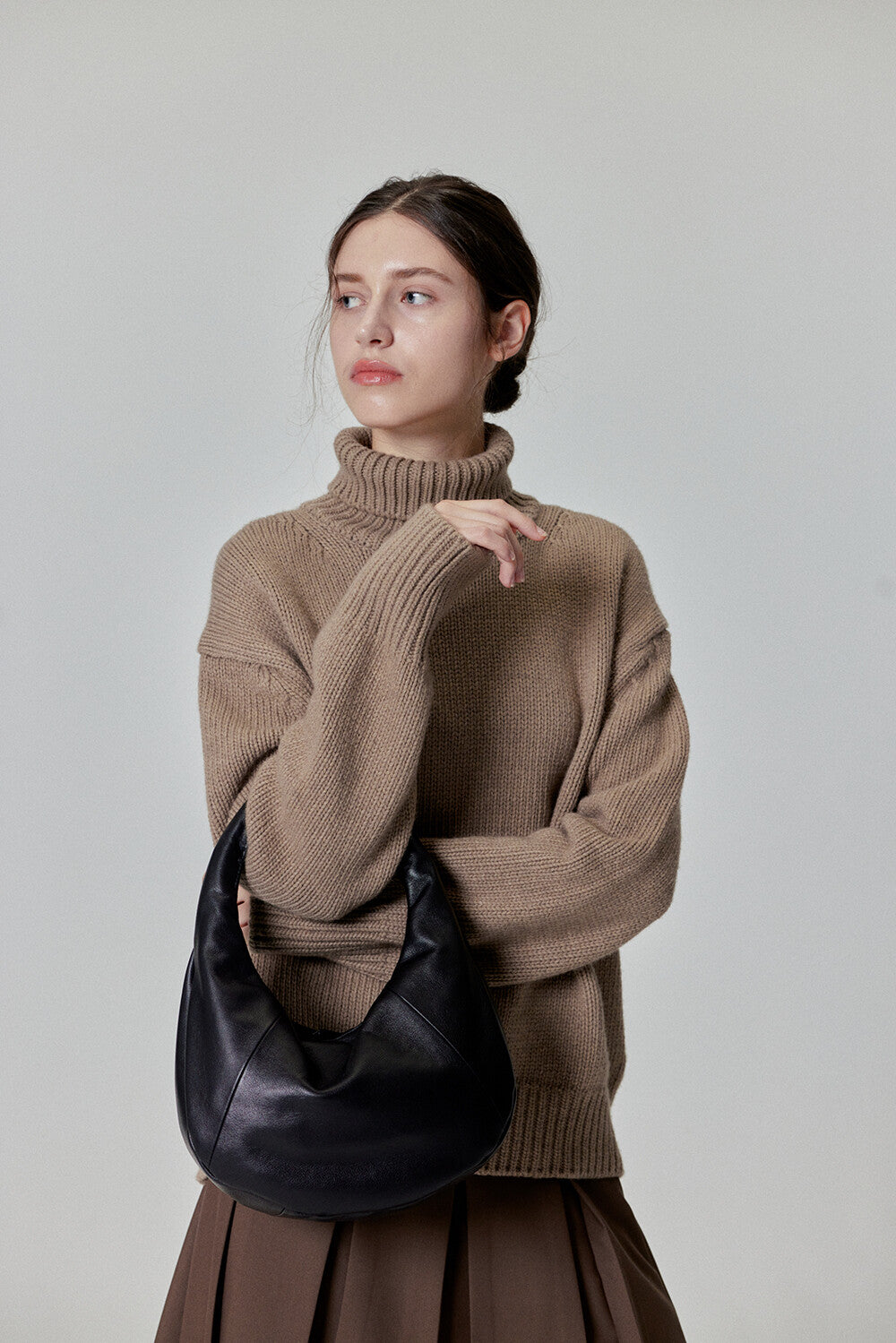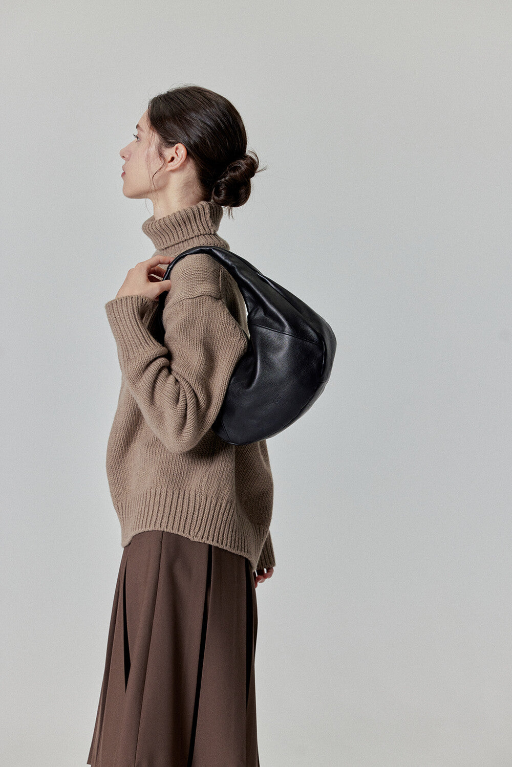 Elevate your style with this sleek and minimalist hobo bag. Crafted from high-quality cowhide, it features a bold, voluminous silhouette that adds a modern touch to any outfit. The soft yet firm leather structure ensures durability while maintaining a sophisticated look.