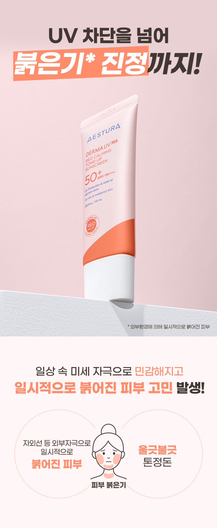 In daily life, skin can become sensitive and temporarily red due to microstimulation. This product line goes beyond UV protection by calming redness and evening out skin tone.