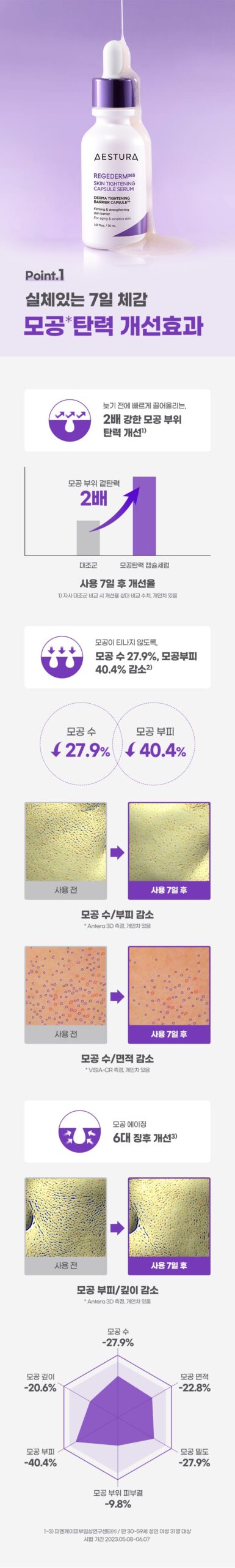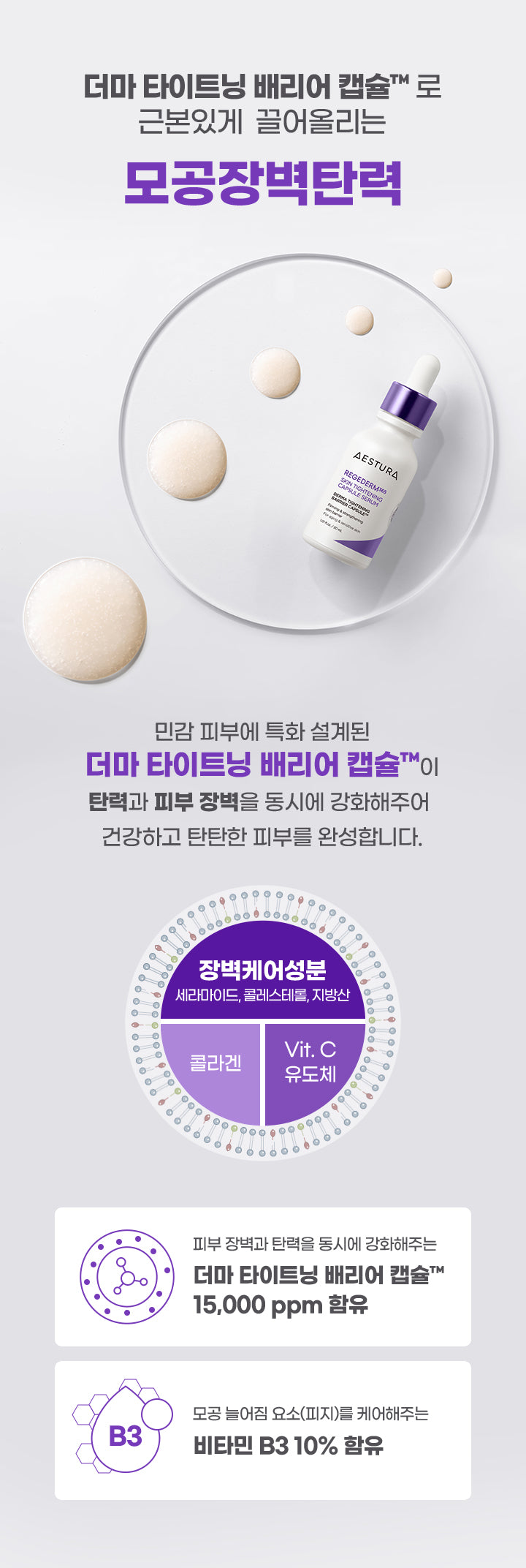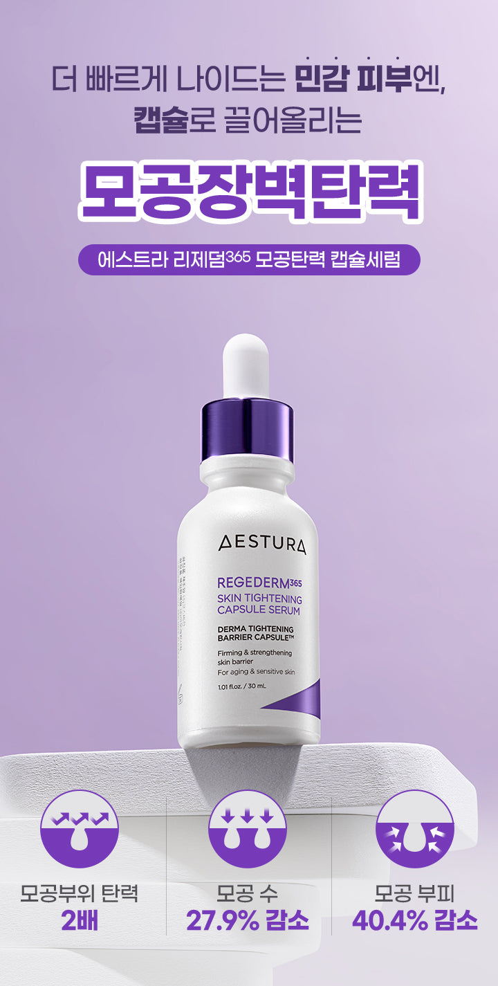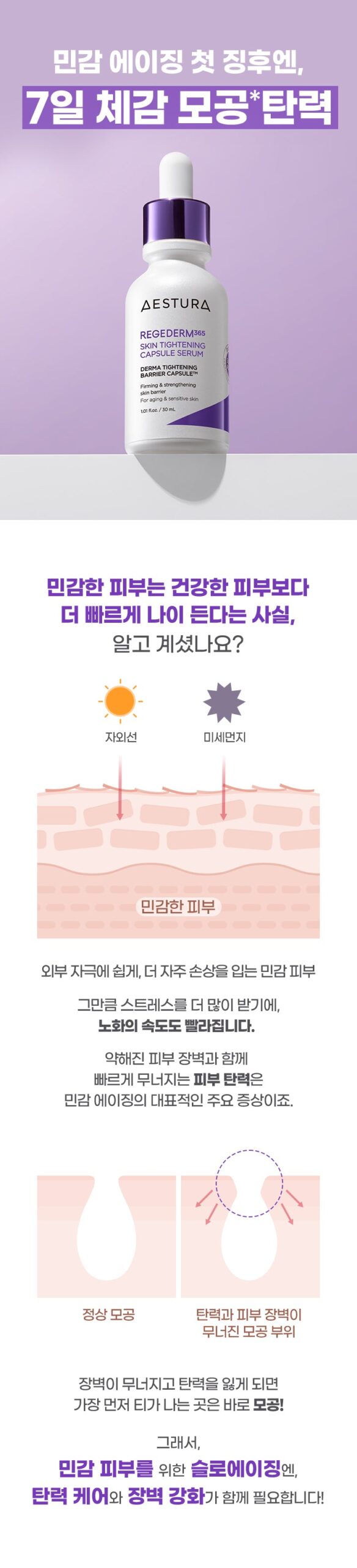 The AESTURA Regederm365 Skin Tightening Capsule Serum is the perfect aging care solution for sensitive skin, effectively addressing sagging pores and enhancing skin elasticity.