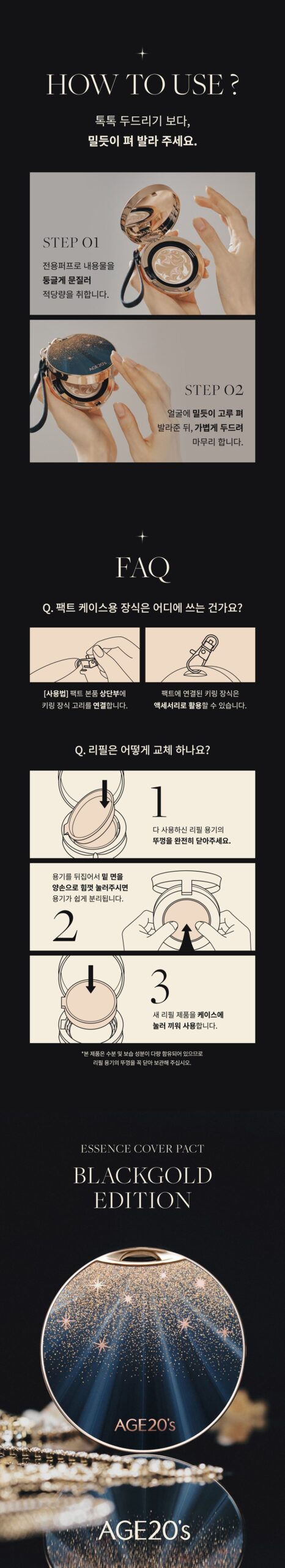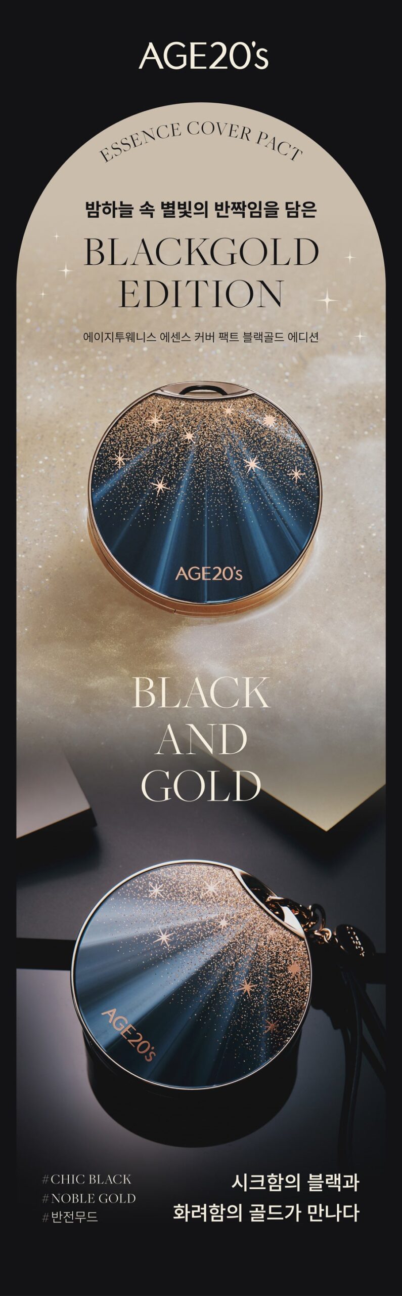 Elevate your beauty routine with the AGE20’s Essence Cover Pact Black Gold Edition, a luxurious foundation pact designed to enhance your skin’s natural radiance while providing exceptional coverage.