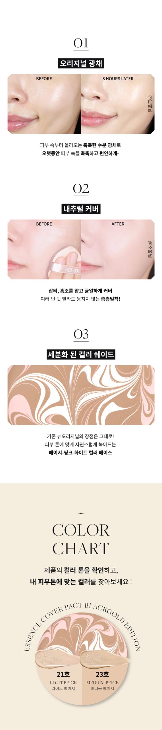 Elevate your beauty routine with the AGE20’s Essence Cover Pact Black Gold Edition, a luxurious foundation pact designed to enhance your skin’s natural radiance while providing exceptional coverage.