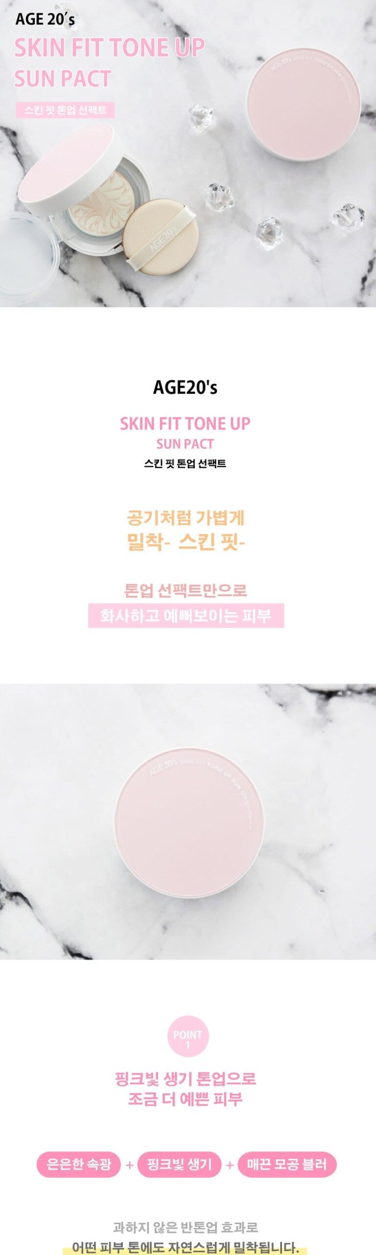 The AGE20’s Skin Fit Tone Up Sun Pact is a compelling addition to any dermatologist’s recommendation list, primarily due to its potent SPF 50+ PA++++ protection coupled with the added benefits of skin brightening. Its formulation includes key ingredients that promote not just sun safety but also visible radiance improvement in the complexion. On application, it presents as refreshingly silky and dries down to an elegant powdery finish without residue—a feat not easily accomplished by many sunscreens on the market. I particularly appreciated how well it blurred my pores while providing hydration; a rarity in tone-up products that often feel heavy or cakey. The seamless blend into various skin tones makes this product suitable for diverse demographics.