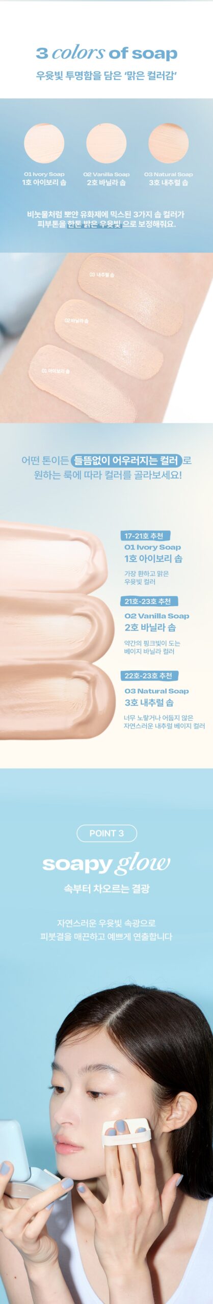 - Natural Soap (For skin tones 22-23): A natural beige that is neither too yellow nor too dark, offering the perfect balance for a subtle glow.