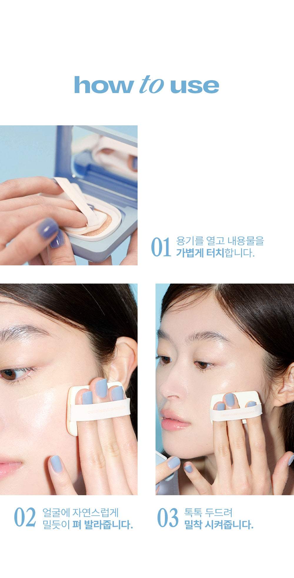 - High Adhesion & Durability: The half-moon-shaped puff allows for precise application, perfectly fitting the natural curves of your face.
