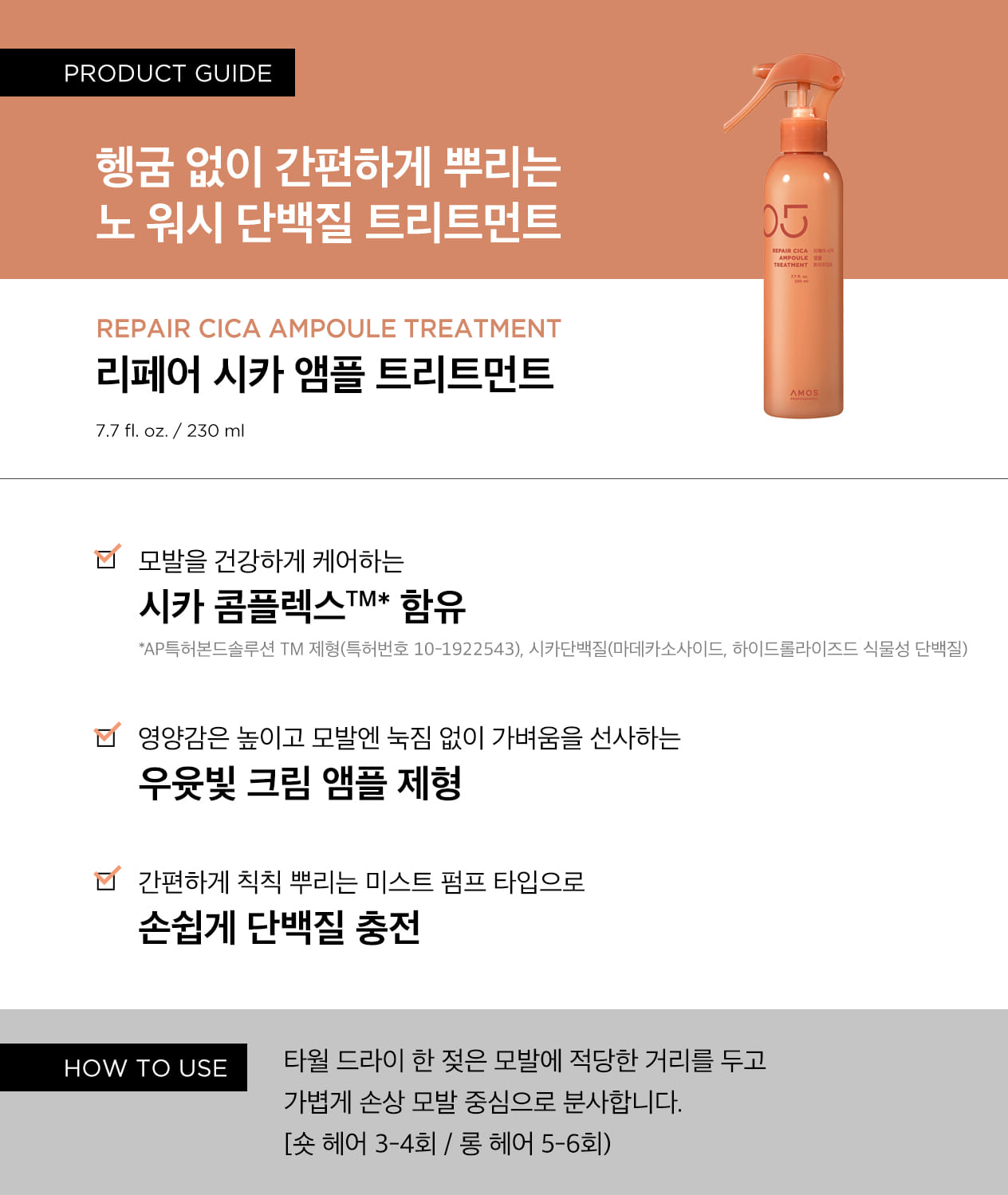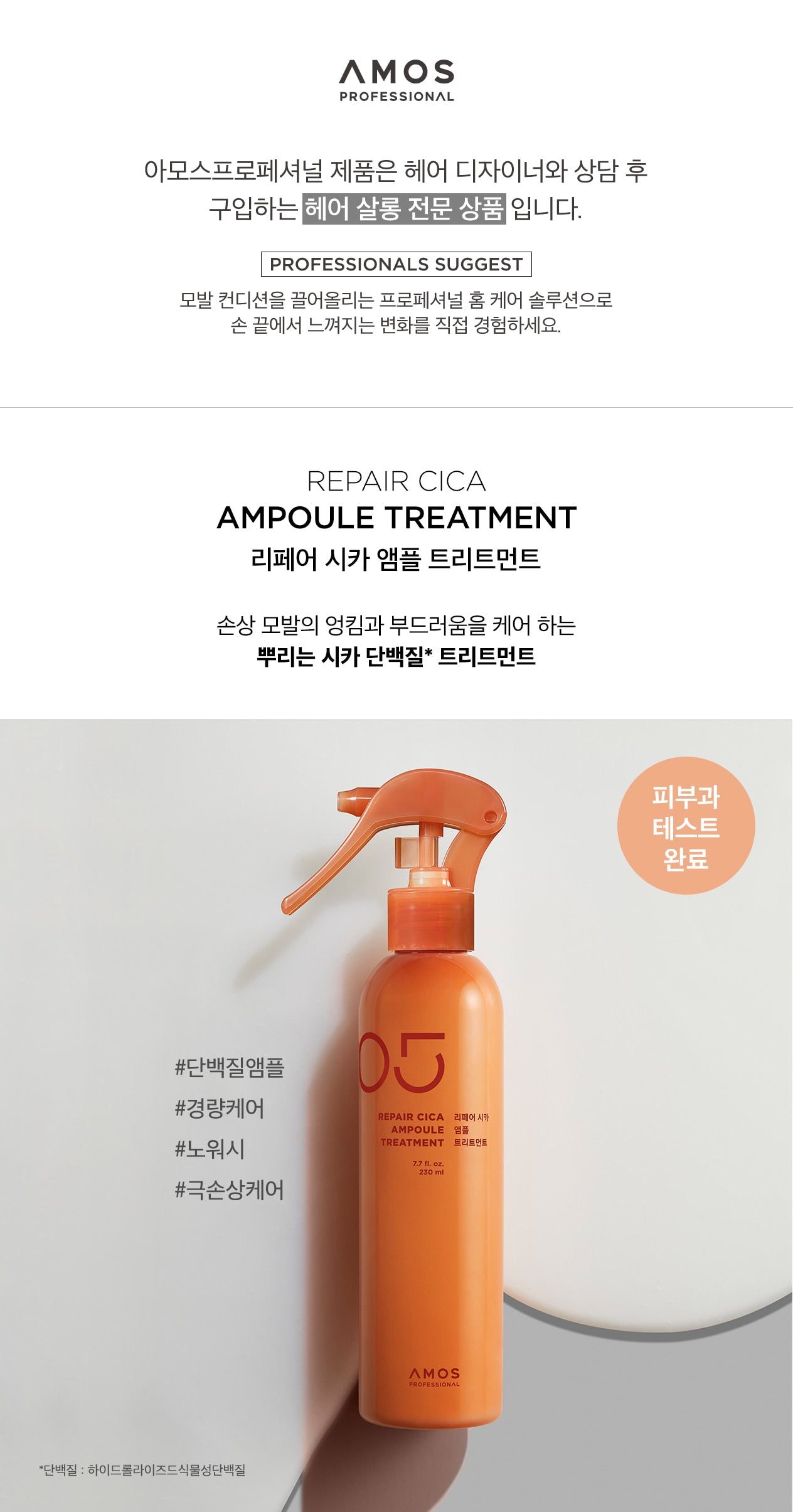 Experience professional salon-quality hair care at home with Amos Professional REPAIR CICA AMPOULE TREATMENT. Designed for damaged, tangled, and fragile hair, this spray-type cica protein treatment delivers deep nourishment without weighing down your strands.