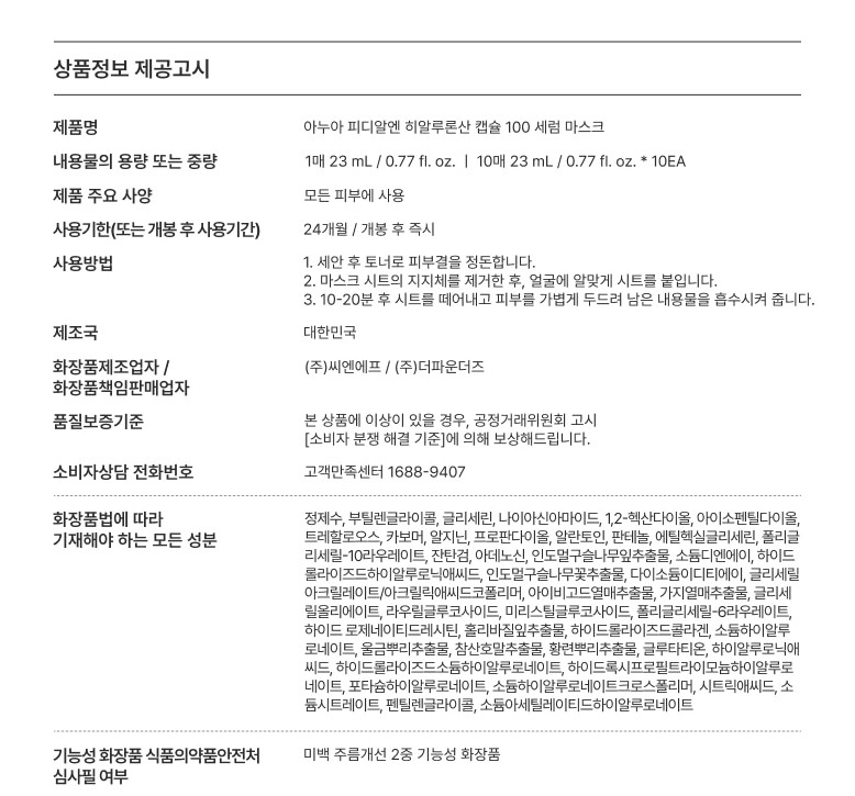 Anua PDRN Hyaluronic Acid Capsule 100 Serum Mask (23ml x 10 Sheets)