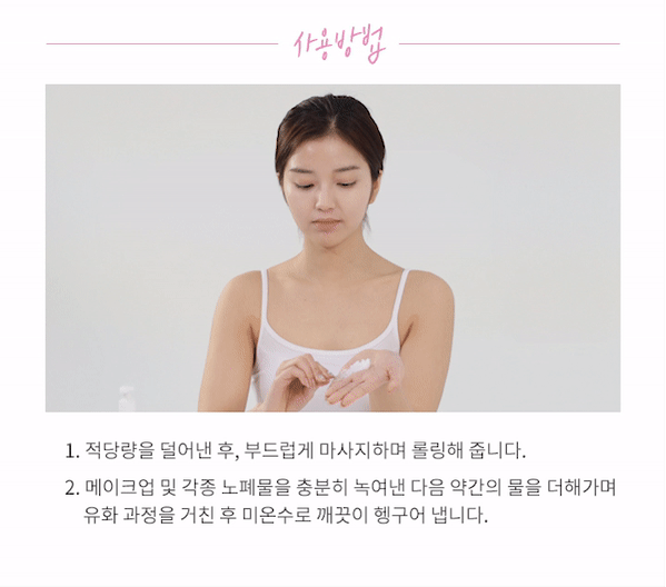 2. After sufficiently dissolving makeup and various wastes, add a little water to emulsify and rinse thoroughly with lukewarm water.