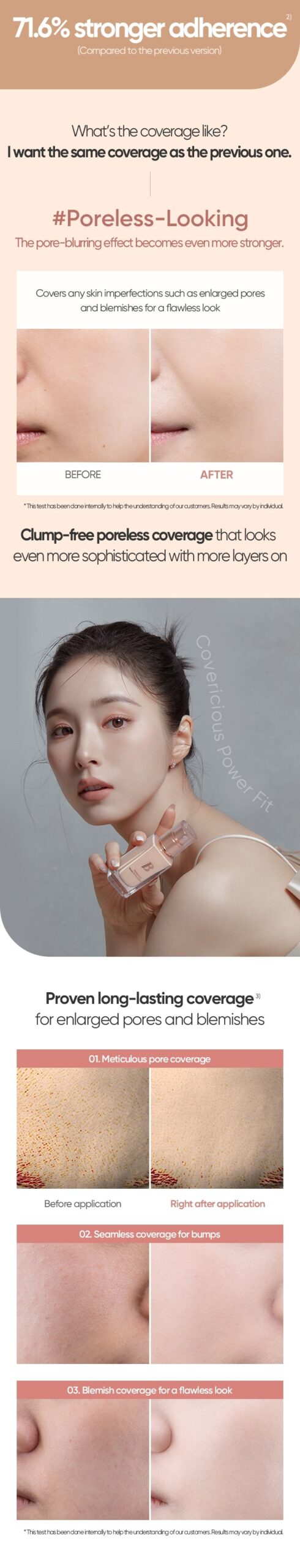 Lightness that makes you forget even applying it with 71.6% stronger adhesion compared to the existing one, it is an ultra-adhesive pore foundation.