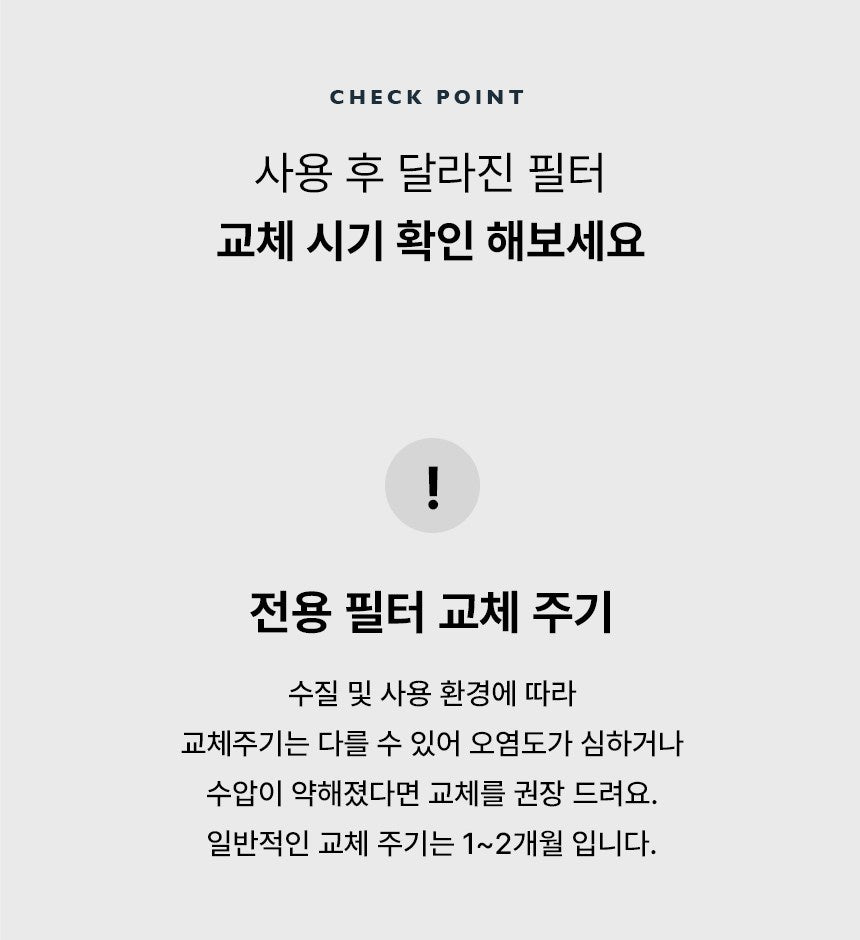 Customizable replacement cycle: Depending on water quality and usage, the filter should be replaced every 1-2 months. If the contamination is severe or water pressure is weak, consider replacing it sooner.
