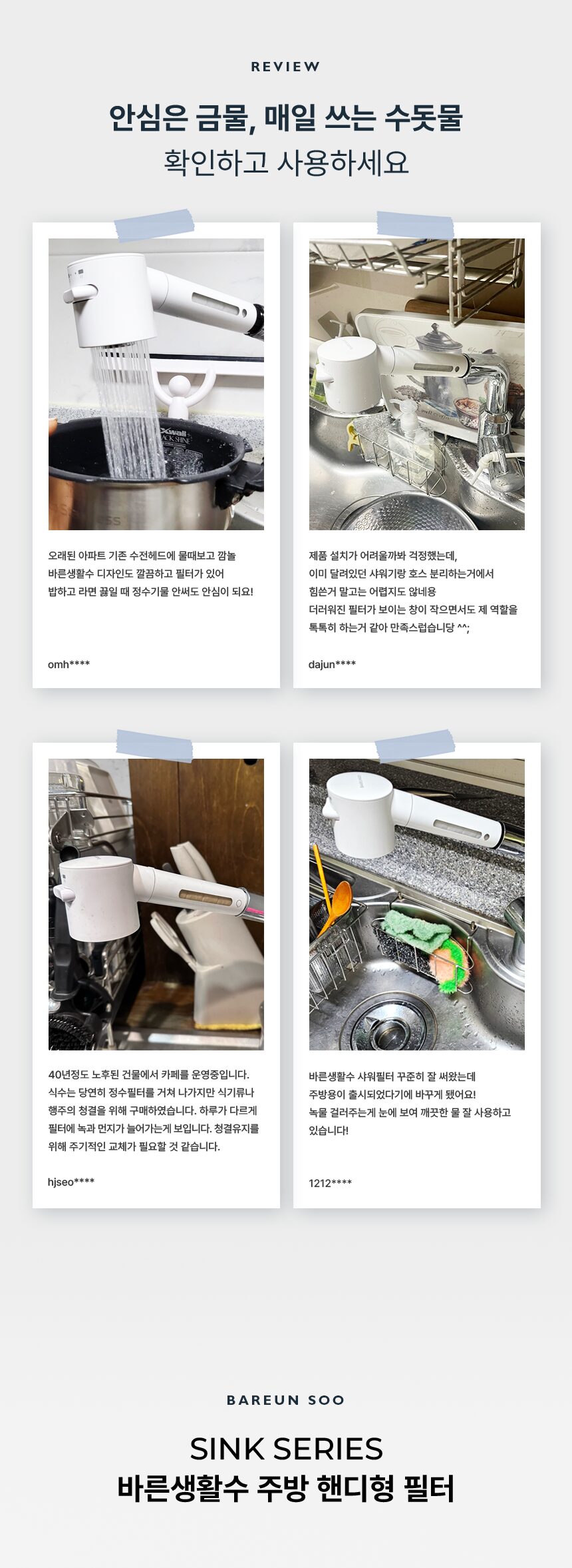 美しい水は生活の質を高めるものであり、BAREUNSOOキッチンフィルターはその期待に完璧に応えてくれます。汚染されたパイプや、不快な泥味から私たち家族を守ってくれる強力なフィルトレーション能力には驚きました。古い配管の危険物質までも排除でき、安全でクリアな飲料水が供給されています。また、このセット内で使用する部品もしっかりしていて頻繁なるメンテナンス作業にも適した優れたデザインです。この道具のお陰様で、自宅では常時新鮮さと健康意識があります。