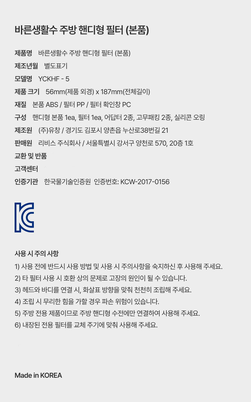BAREUNSOO Kitchen Handy Filter – Reliable Water Purification for Your Kitchen