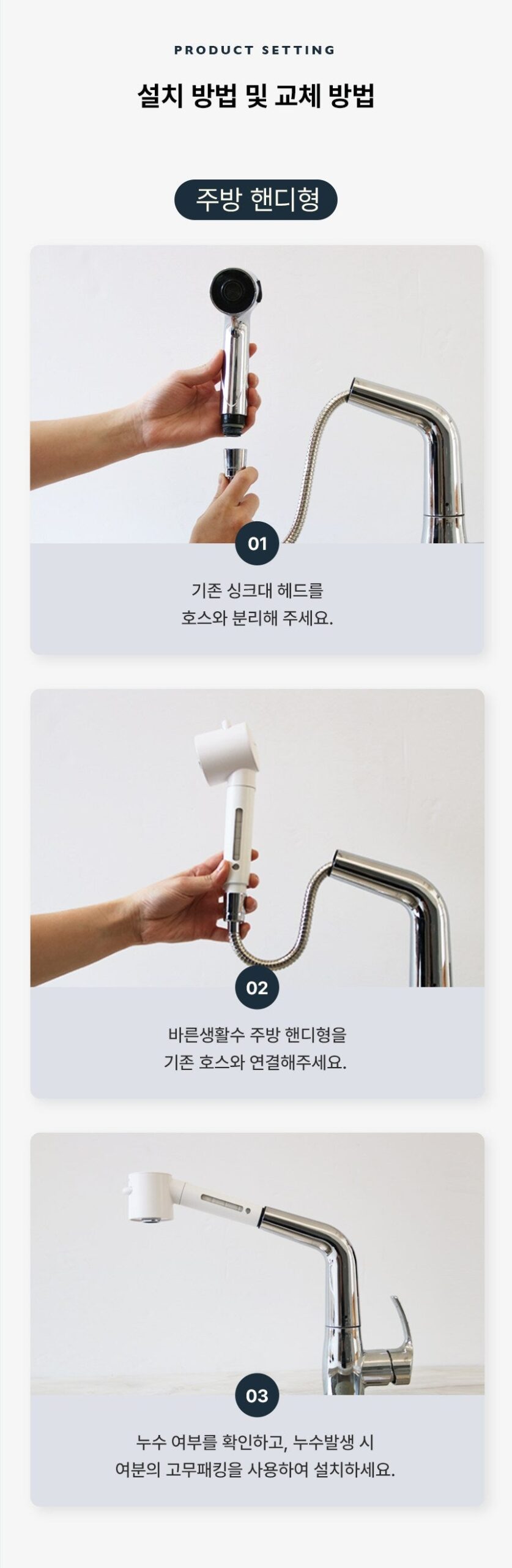 2️⃣ Attach the BAREUNSOO Kitchen Handy Filter to the hose.