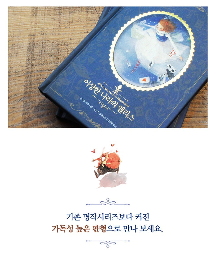 I’ve read a ton of classic adaptations over the years, but let me tell you, this Beautiful Classic Series edition of ‘Alice’s Adventures in Wonderland’ is truly something special. The illustrations by Kim Min-ji just pop with life! I’ve got several other versions on my shelf that are either too small to enjoy or just plain lackluster covers. This one stands out not only for its stunning gold-framed design but also because it’s larger and so much more readable than those old tiny paperbacks from my youth. Honestly feels like it brings Lewis Carroll’s words to life even better than before! Perfect addition for any bookshelf if you’re into collectibles; I can already feel it boosting its value as part of the series. Such a lovely gift idea, especially when nostalgia kicks in while flipping through these pages again.
