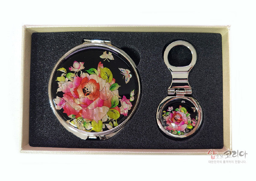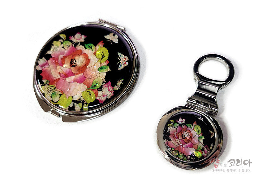 * Beautiful Mother-Of-Pearl Hand Mirror Set Mothe Of Pearl Hand Mirror-Rose 2pcs Set / Made In Korea