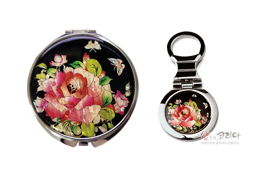 * Beautiful Mother-Of-Pearl Hand Mirror Set Mothe Of Pearl Hand Mirror-Rose 2pcs Set / Made In Korea
