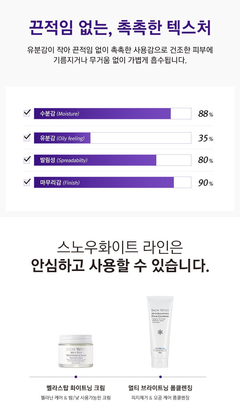 The Snow White Melastop Whitening Cream is crafted to be used at any time of the day. Thanks to the stability of niacinamide against light and heat, you can incorporate this cream into both your morning and nighttime skincare routines without worry.