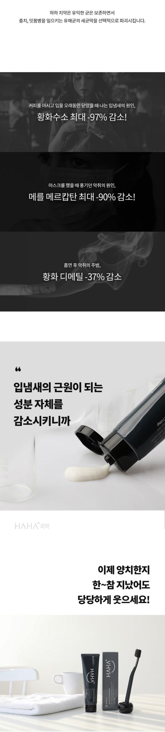 Haha Toothpaste suppresses harmful bacteria, which are the cause of bad breath, and increases beneficial bacteria to find the root of bad breath and improve it excellently.