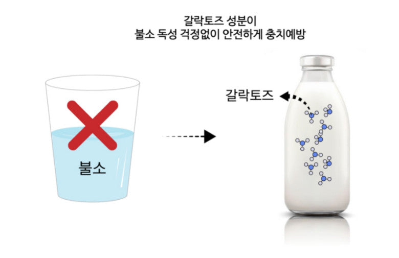 Galactose, a patented ingredient of Seoul National University, replaces fluoride and completely suppresses mutated mycobacteria, the main cause of cavities, and severe varicose veins, the main cause of periodontal disease.