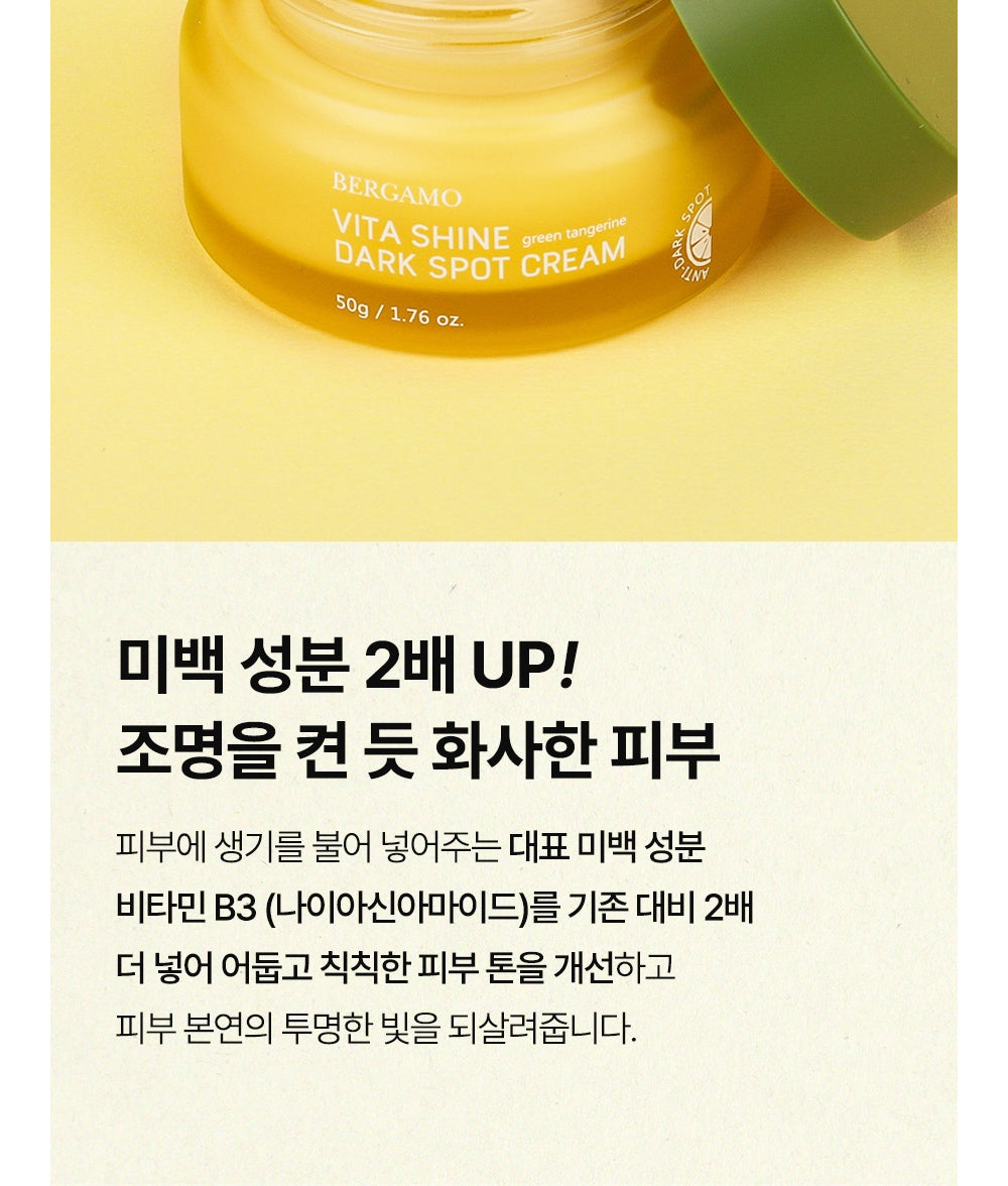 Living in the heart of Chicago, where hustle and bustle define our daily lives, I’m constantly looking for products that can truly uplift my weary complexion. Having recently stumbled upon BERGAMO’s Green Tangerine Vita Shine Blemish Cream, let me tell you—it’s a breath of fresh air! Unlike many typical whitening creams I’ve tried before which felt either harsh or sticky on my face (looking at you—clinical brands!), this gem absorbs beautifully into the skin without leaving any trace. Enriched with nutrients from Jeju green tangerines known for their vivid antioxidants—not to mention it offers superb hydration as well—this cream has worked wonders against my dark spots while noticeably plumping fine lines too! The best part? No overpowering fragrances; just a soft citrus kiss reminding me every time why it’s now among my beauty essentials.
