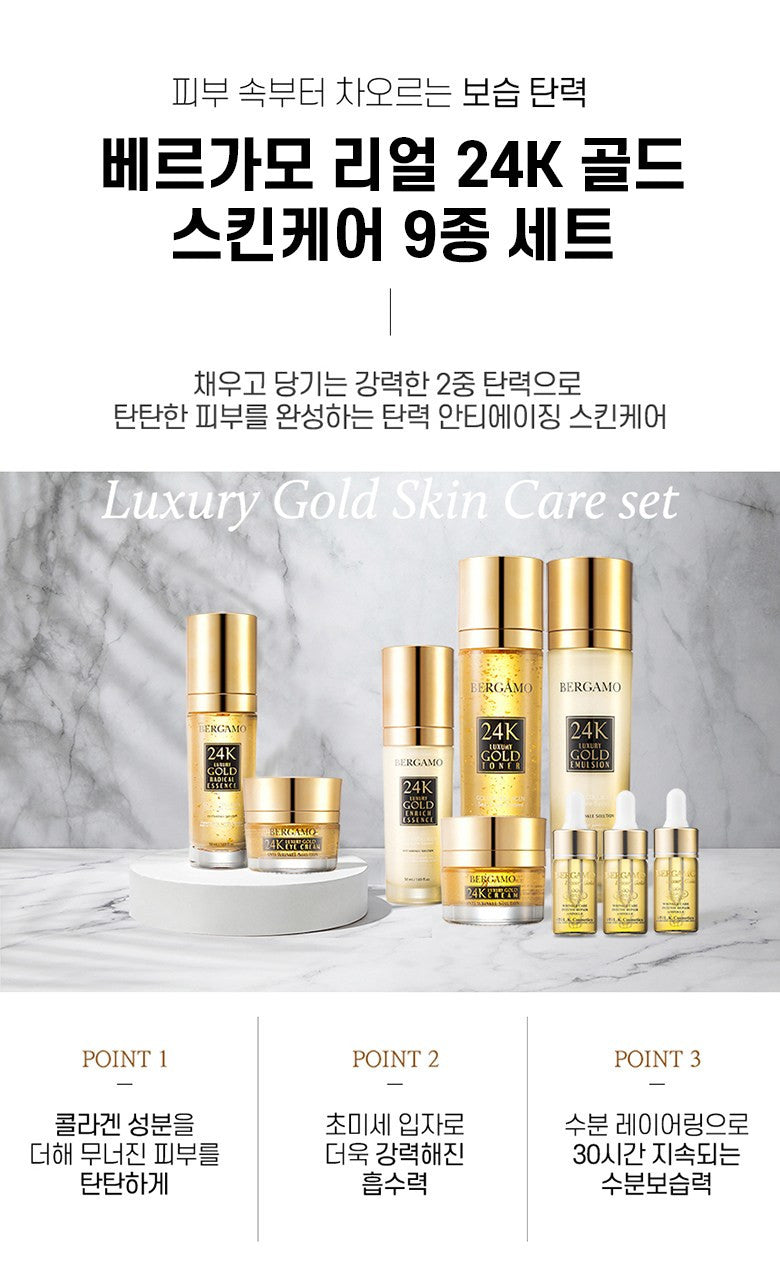 Using the BERGAMO Real 24K Gold set has been a remarkable experience for my skin. The collagen infusion is incredibly effective; I’ve noticed my skin feeling firmer and more elastic within just a couple of weeks. Additionally, the moisturizing properties keep my complexion hydrated all day without any greasy residue. It’s luxurious yet very practical—definitely worth incorporating into my routine for anti-aging benefits.