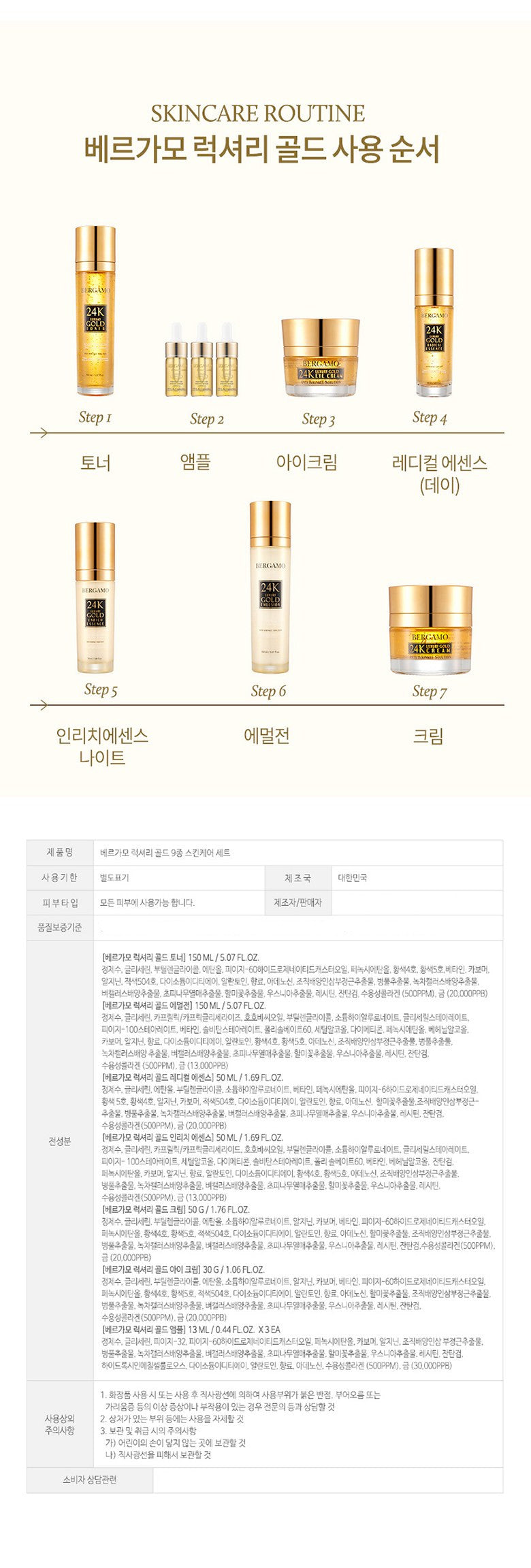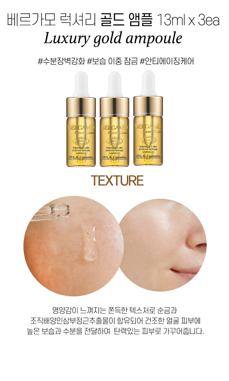 - Luxury Gold Ampoule (13ml+3ea): A concentrated formula that locks in moisture, offering advanced anti-aging benefits.