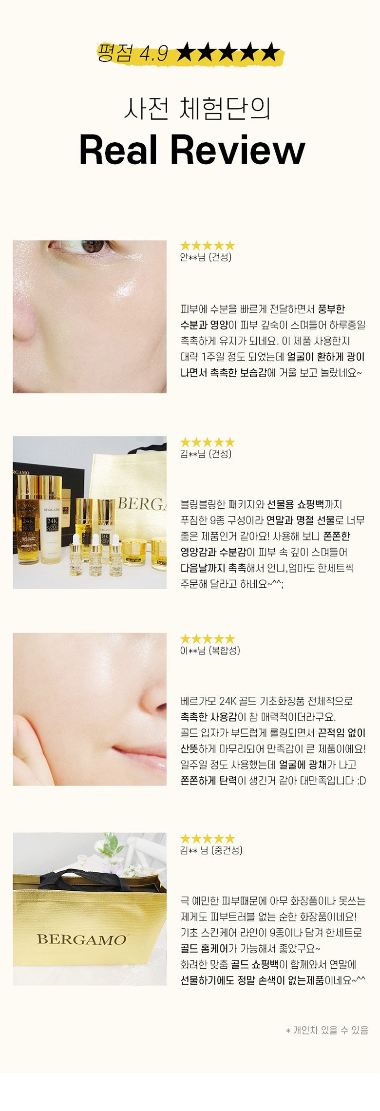 Using the BERGAMO Real 24K Gold set has been a remarkable experience for my skin. The collagen infusion is incredibly effective; I’ve noticed my skin feeling firmer and more elastic within just a couple of weeks. Additionally, the moisturizing properties keep my complexion hydrated all day without any greasy residue. It’s luxurious yet very practical—definitely worth incorporating into my routine for anti-aging benefits.