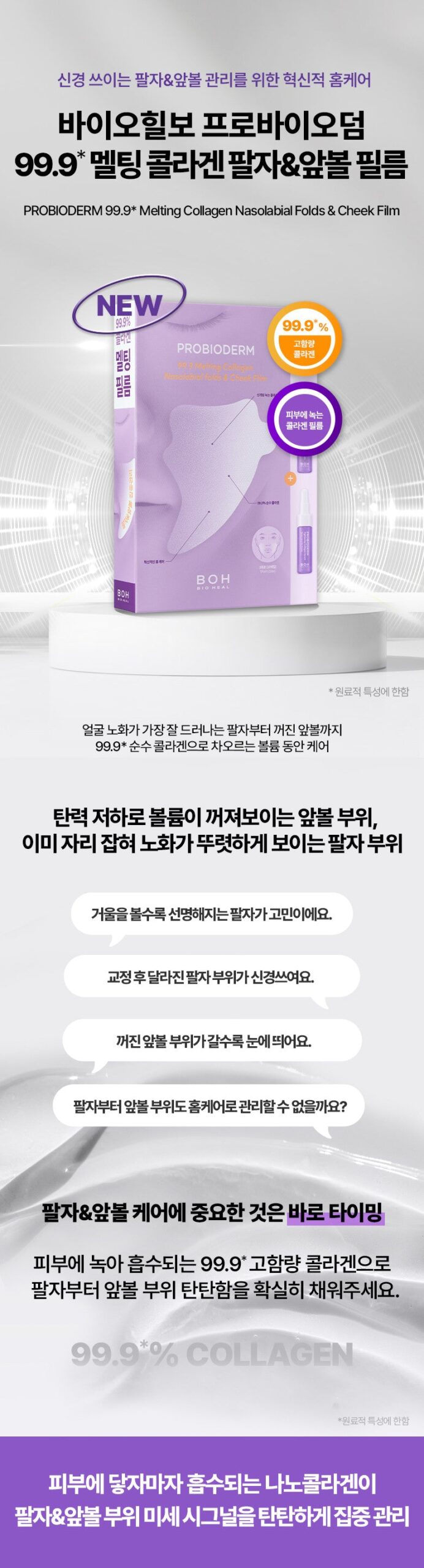 Having explored numerous skincare treatments over the years, I can genuinely say that the BIO HEAL BOH Probioderm Melting Collagen Smile Line & Front Cheek Film exceeded my expectations. The formulation boasts a staggering 99.9% collagen content which is truly impressive! After just one application, I noticed how rapidly it absorbed into my skin and delivered noticeable hydration. My smile lines seemed less pronounced, and there was this palpable plumpness in my cheeks post-use—just as they advertised! The included collagen serum worked harmoniously with the film; both products are meticulously crafted using electrospinning technology that really seems to make a difference for elasticity retention and overall appearance. Highly recommended for anyone keen on targeted anti-aging solutions without invasive procedures.